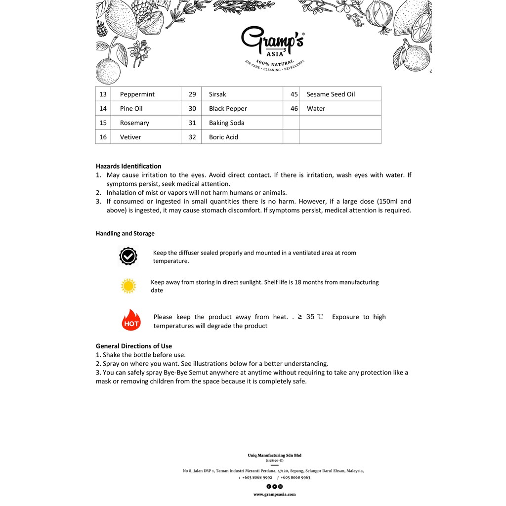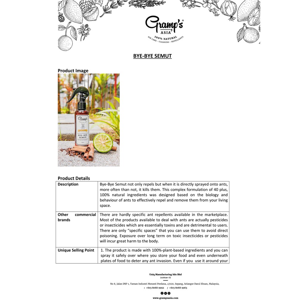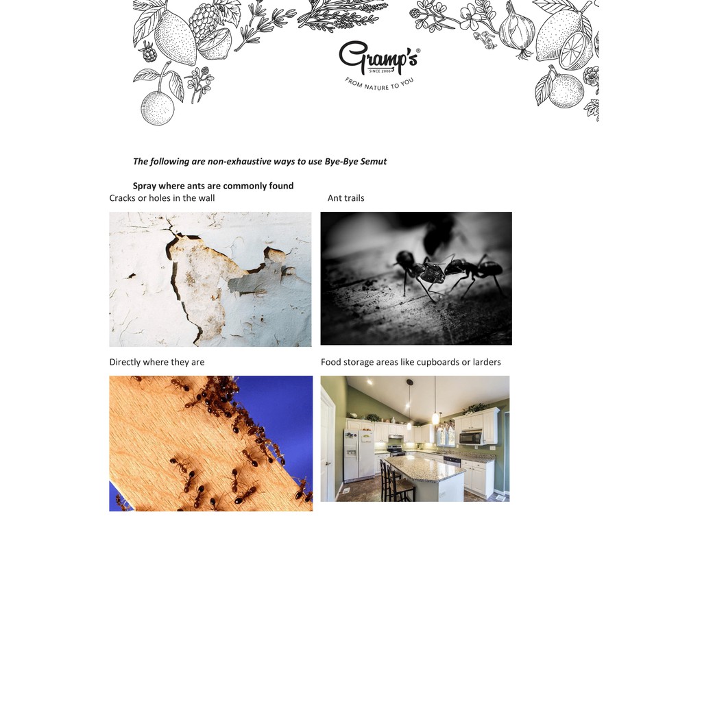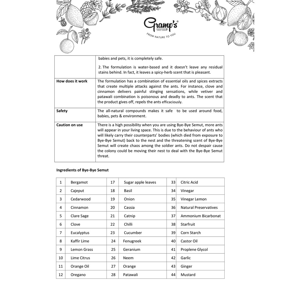 Gramps Bye Bye Semut (Ant Repellent) 150ML - 100% Natural Ingredients
