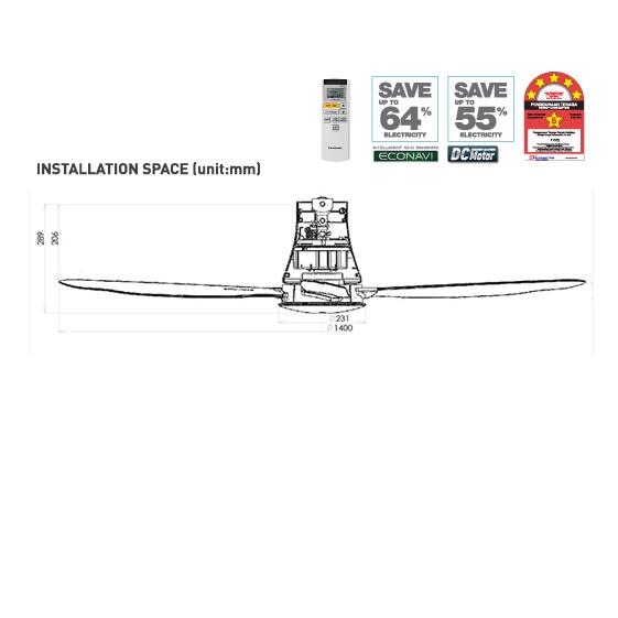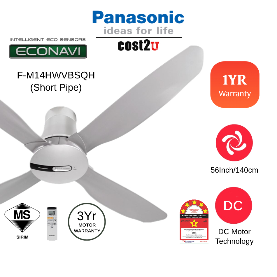 Panasonic 56" 4 Blades Econavi Ceiling Fan with DC Motor | FM14HW FM14FE FM14ME (Kipas Siling 风扇 Siling Fan 風扇)