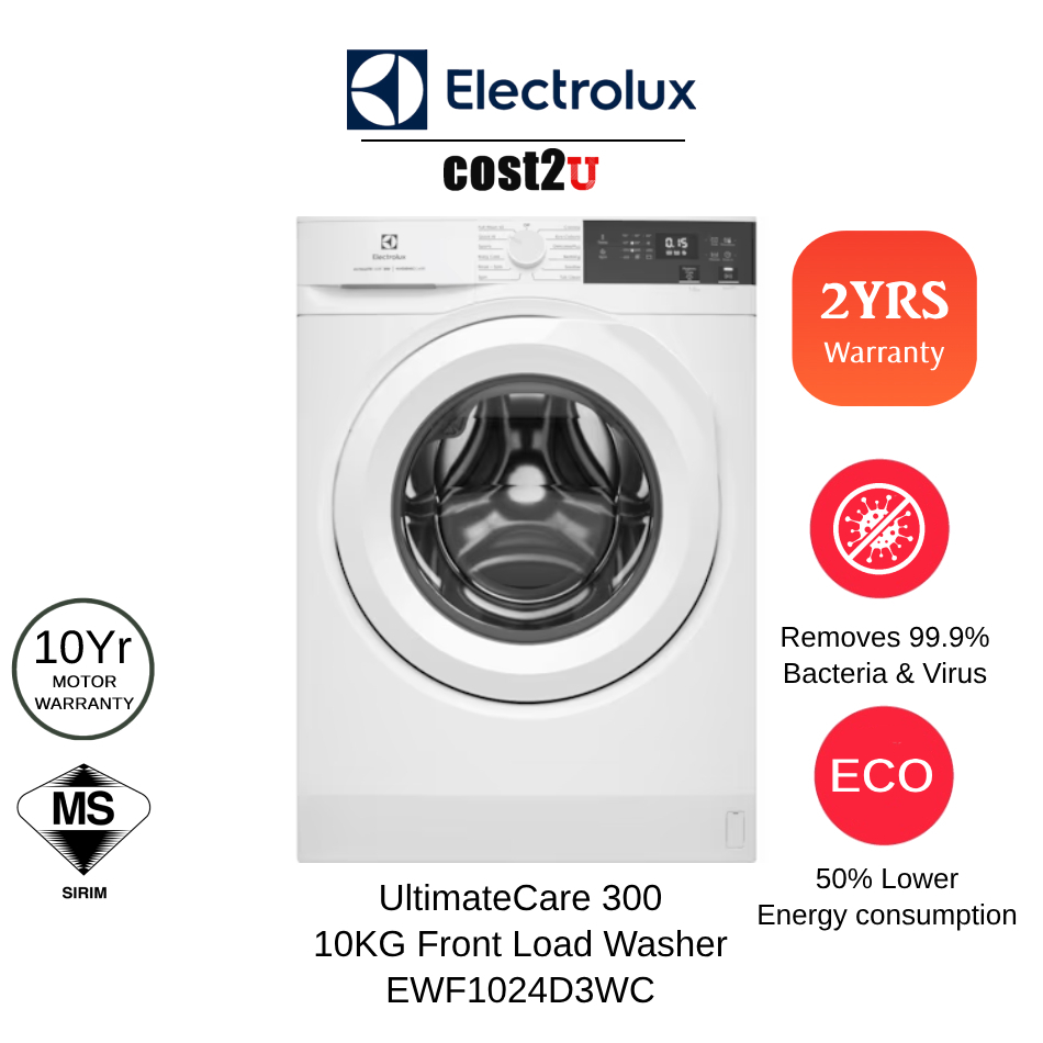 Electrolux 10KG UltimateCare 300 Front Load Washer | EWF1024D3WC Mesin Cuci Baju Washing Machine Mesin Basuh 洗衣机