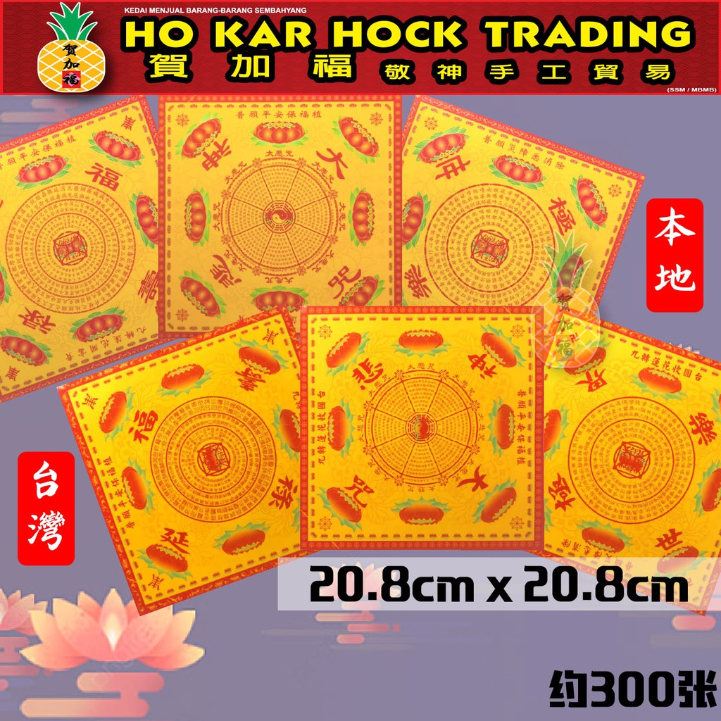 贺加福 台湾/本地/正四方双面莲花纸/300张/大悲咒/极乐世界/福禄夀延/paper