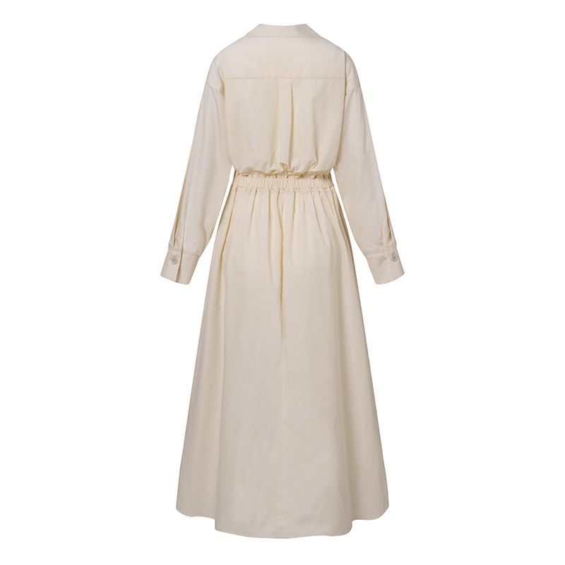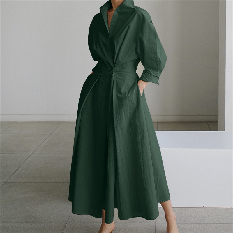 ZANZEA Women Long Sleeve Turn-Down-Collar Solid Color High Waist Casual Maxi Dress