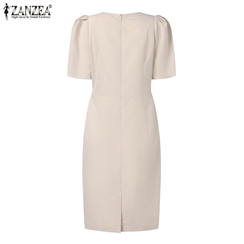 ZANZEA Women Korean Fashion Short Sleeve V Neck Skinny Plain Evening Ladies Long Dress