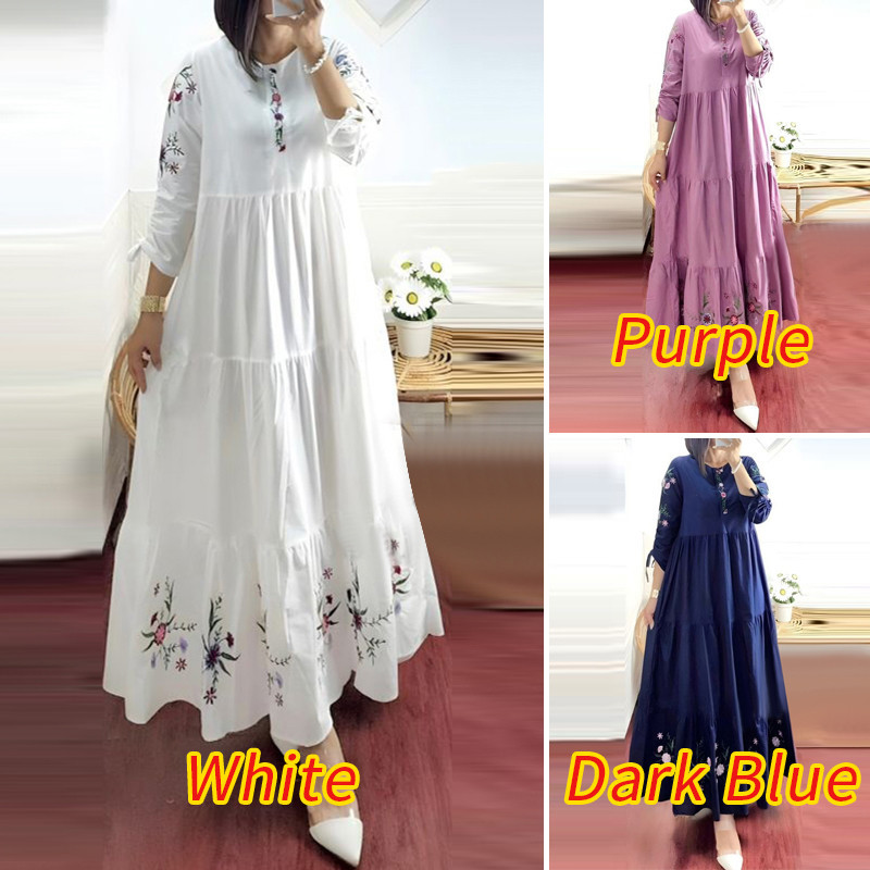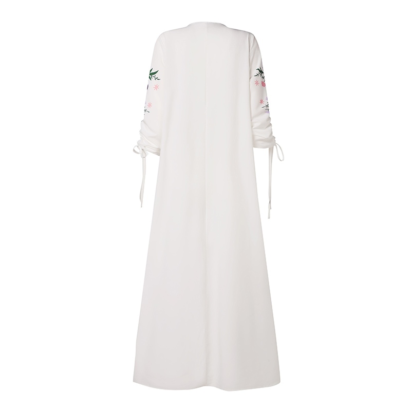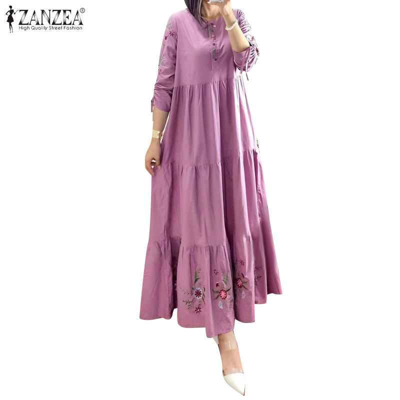 ZANZEA Women Muslim Fashion Drawstring Multi-Layer Segmentation Printing Dress