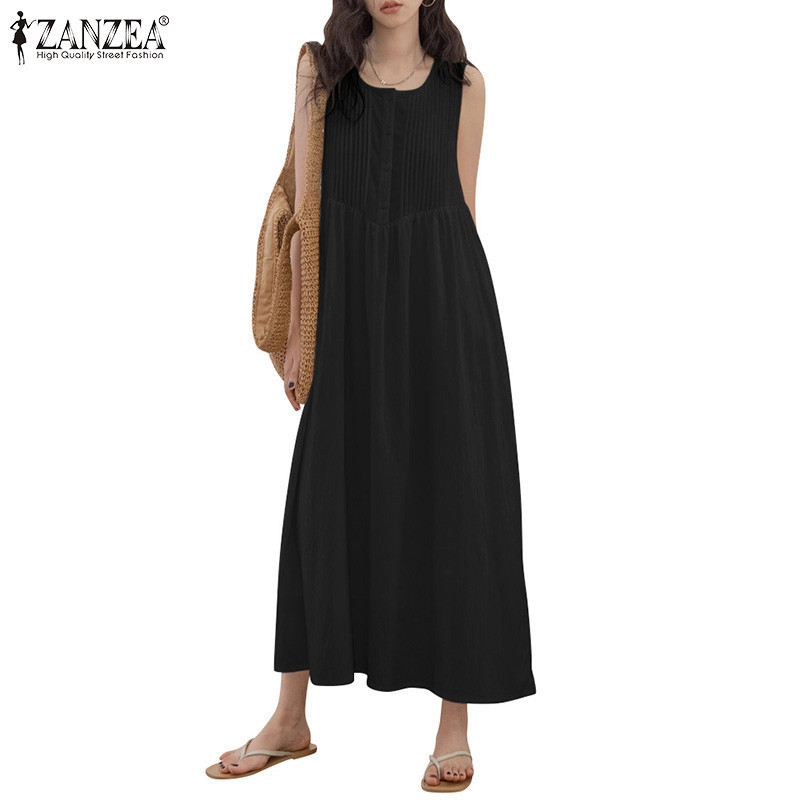 ZANZEA Women Korean Casual U-Neck Sleeveless Striped Loose A-Line Dresses