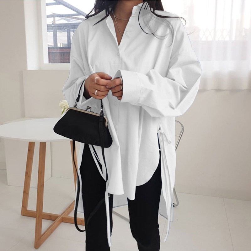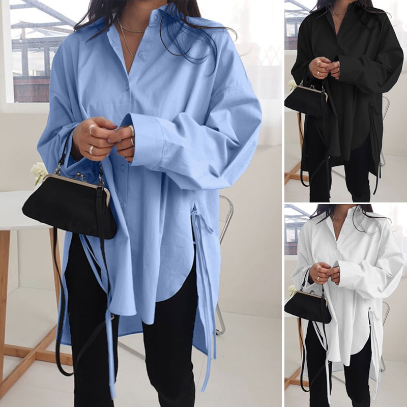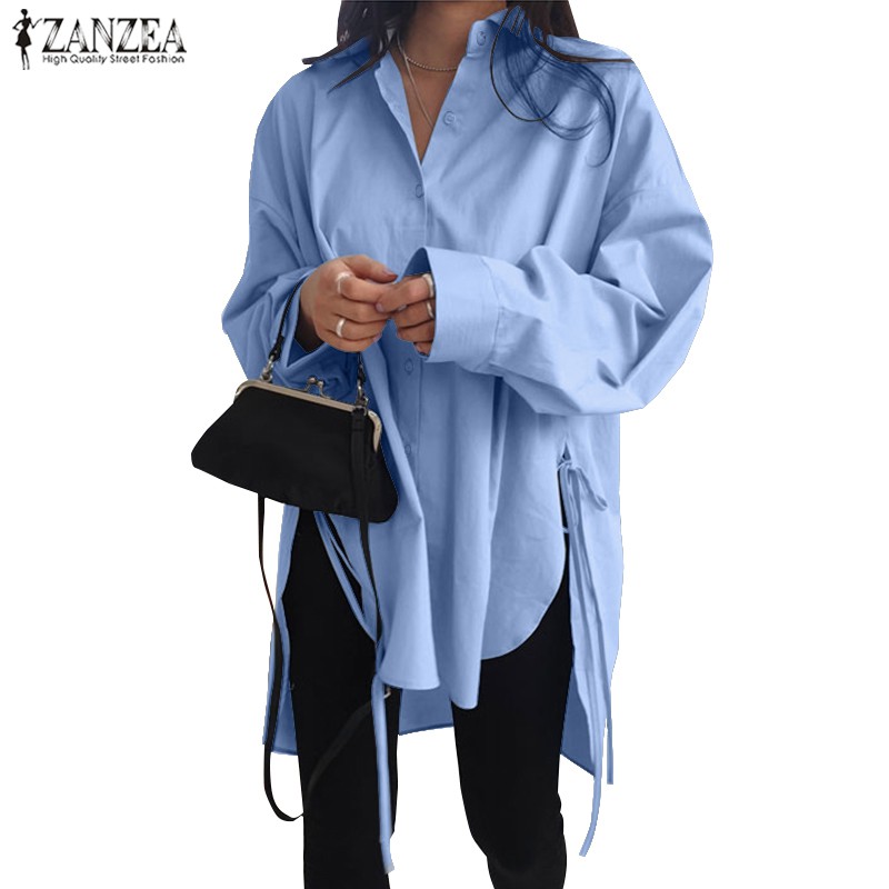 ZANZEA Womens Long Sleeve Collared Button Down Split Hem Blouse