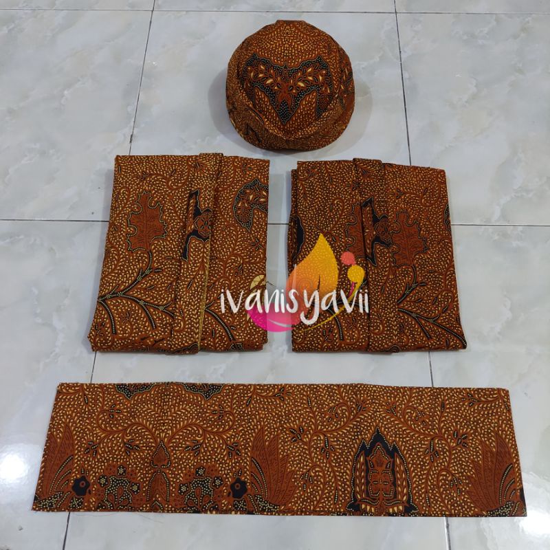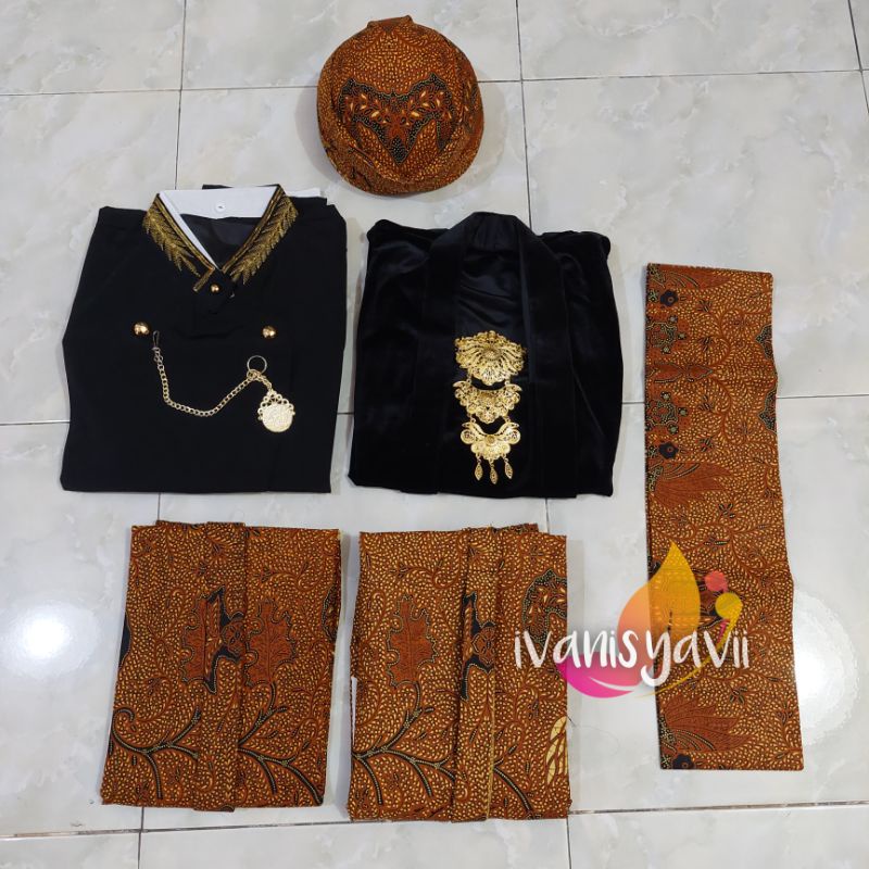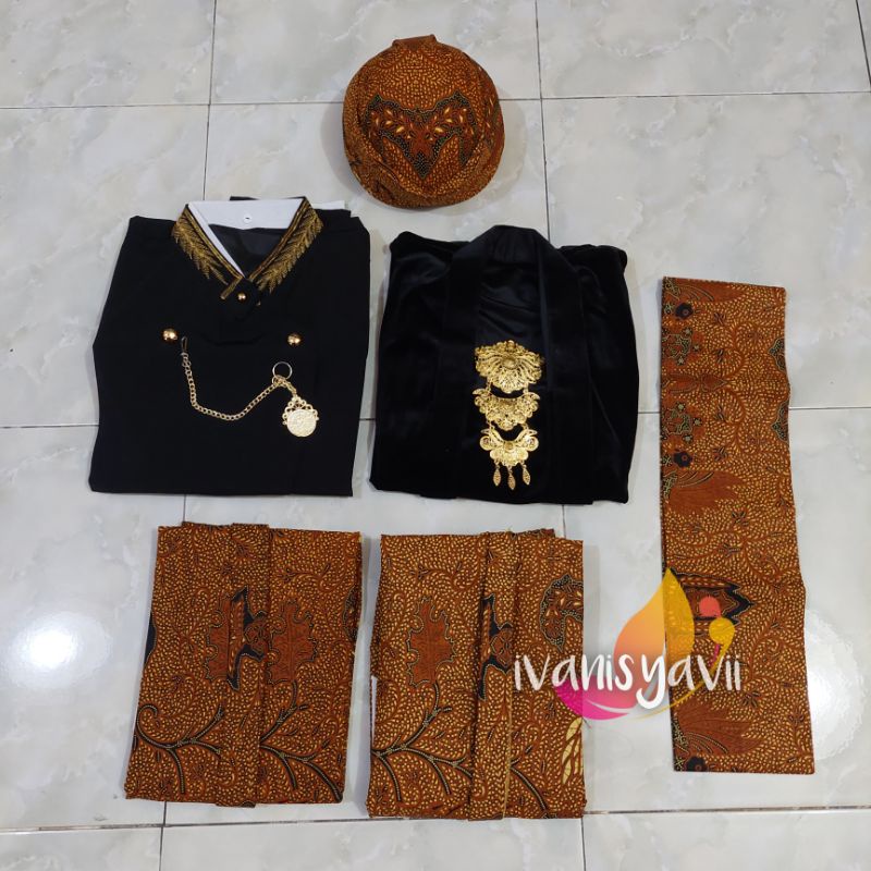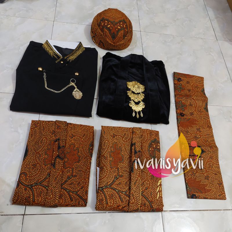 Javanese Traditional Pre-Wedding Dress - Solo Beskap + Kebaya + Batik Shawl (Black Embroidered - Wahyu)