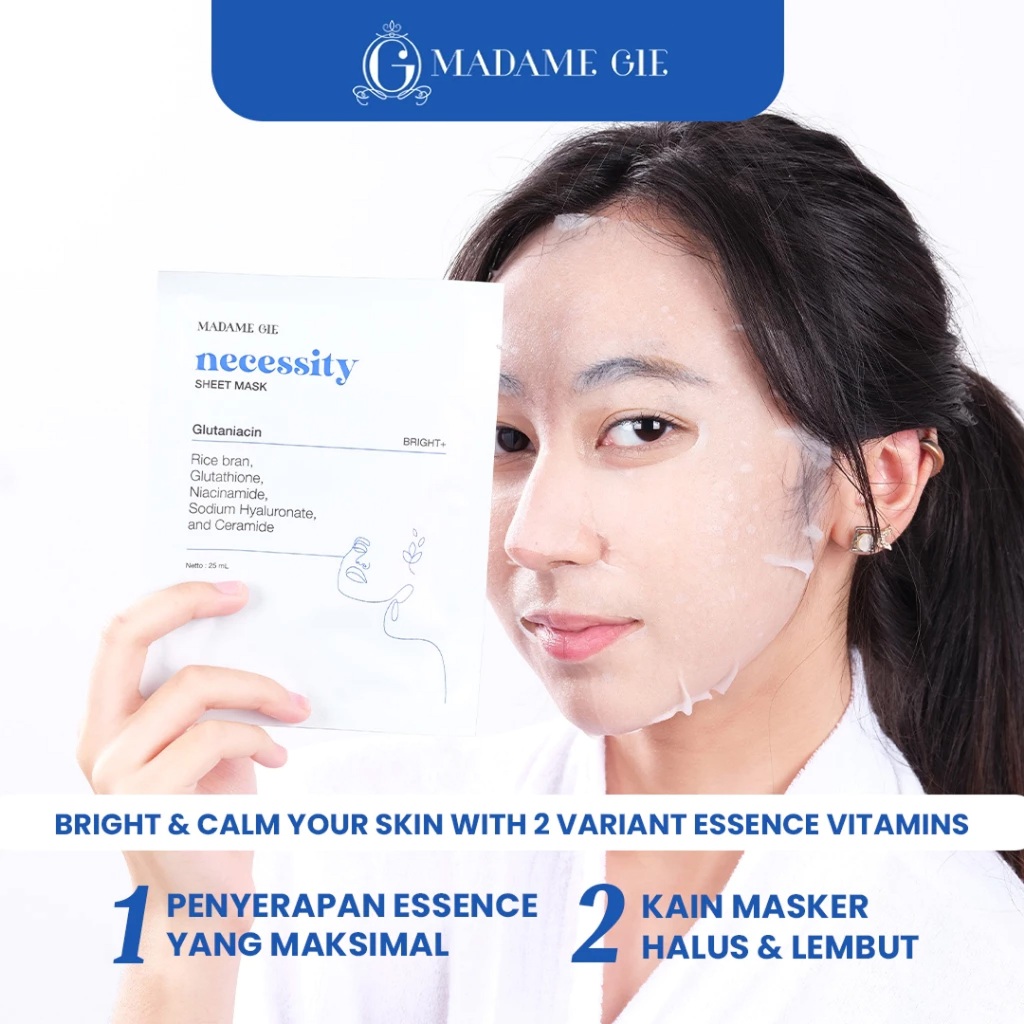 MADAME GIE - NECESSITY SHEET MASK (25 ML) - Soft Natural Artificial Face MASK Sheets That Can Brighten And Reduce Acne
