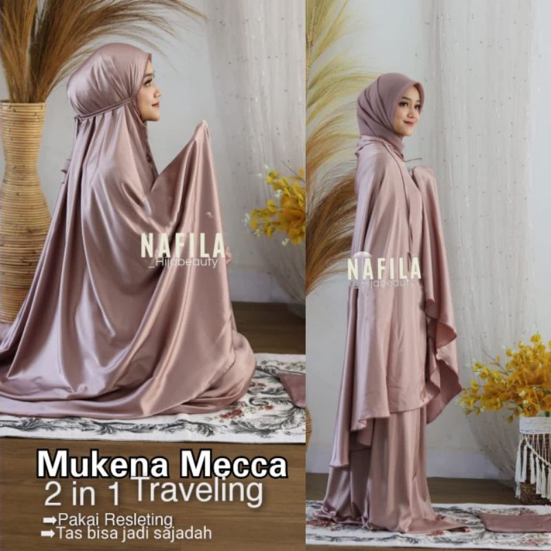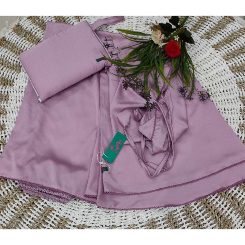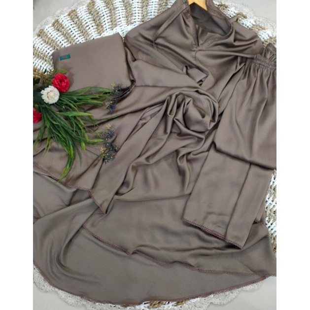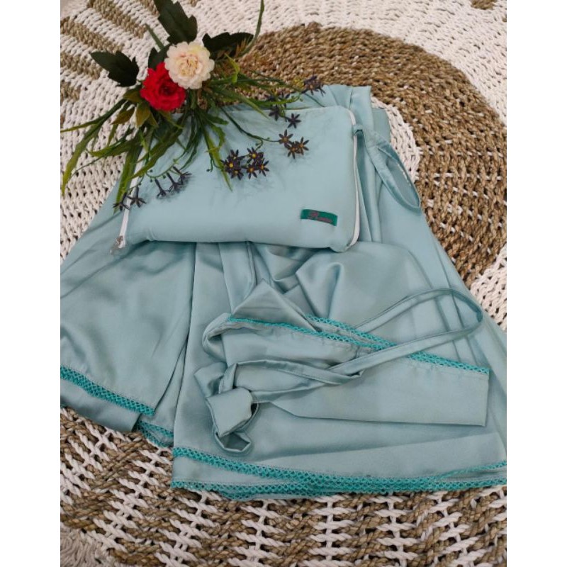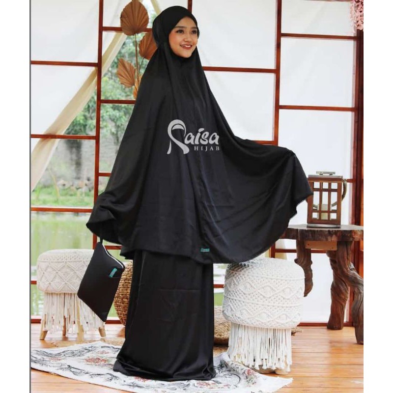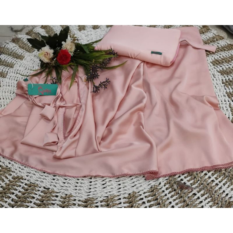 Mukena Telekung Silky Plain Premium Jumbo Silk Satin Material Soft Light Adem 2 in 1 With Chin Zipper By Raisa