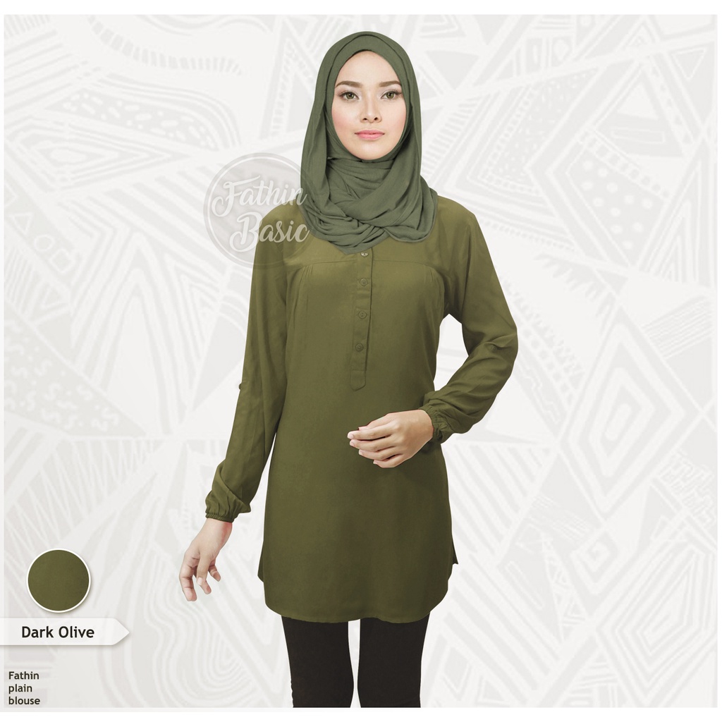Fathin basic plain Blouse - Dark Olive / Army