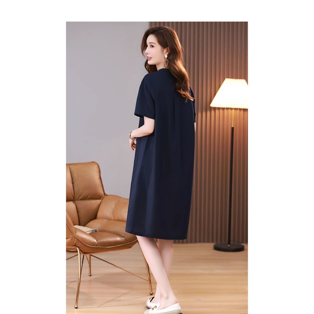Elegant Women's Dresses Summer Short Sleeve V Neck Plain Casual Loose Midi Dresses for Dinner Party Business Office Formal Work Wear Big Size Mom Dress Blue