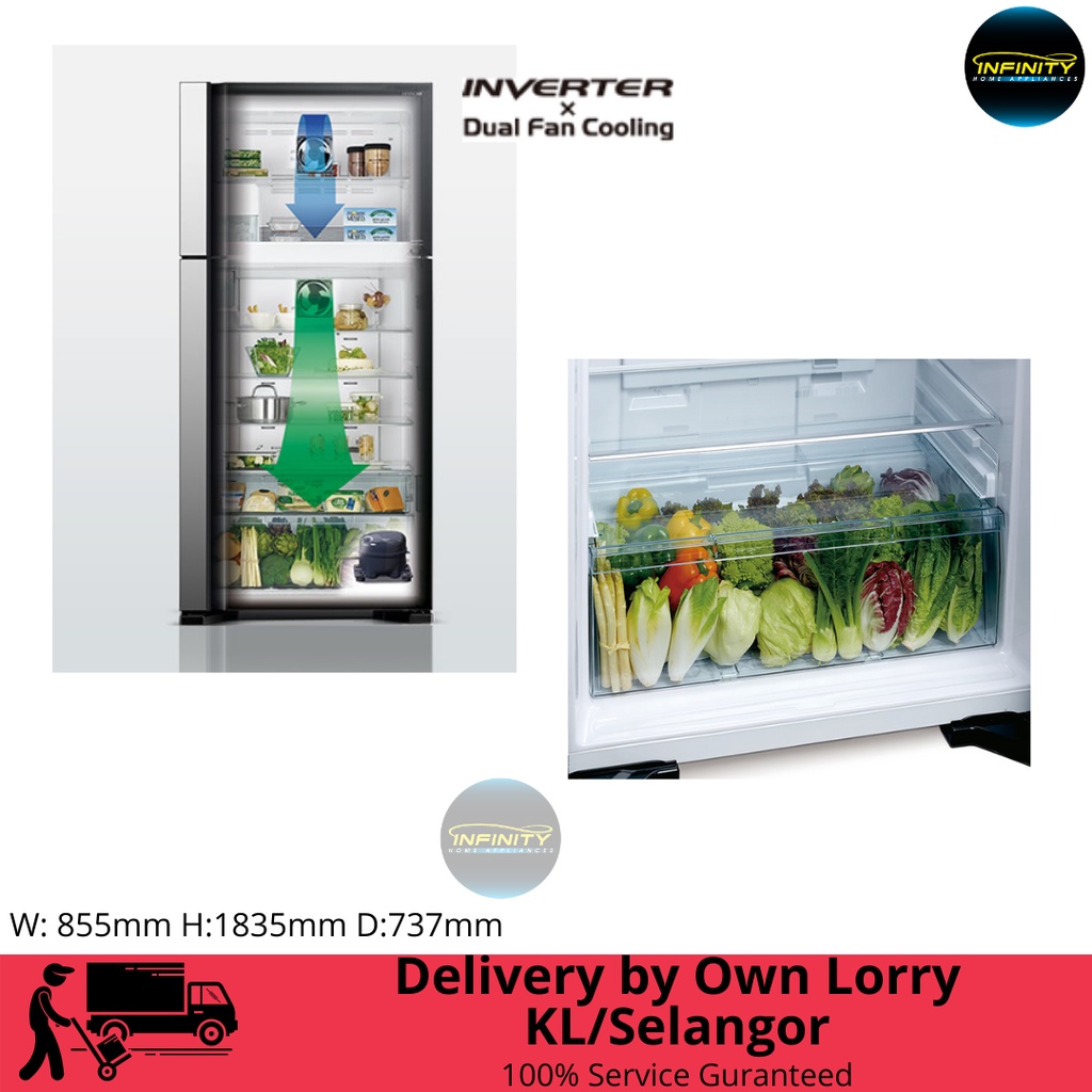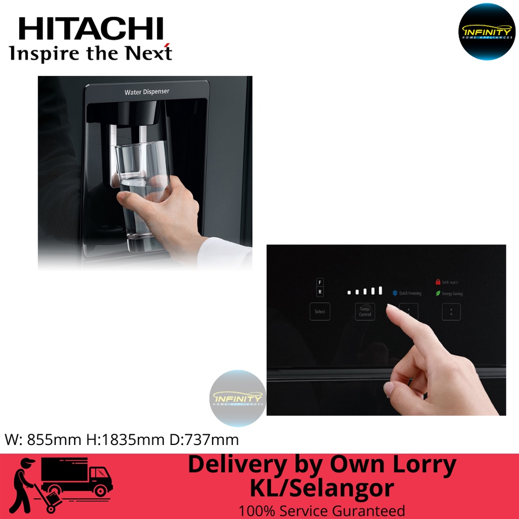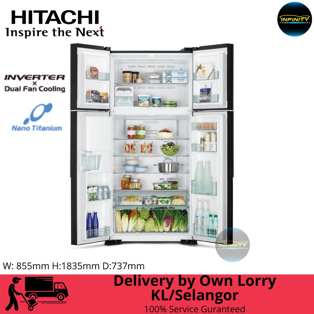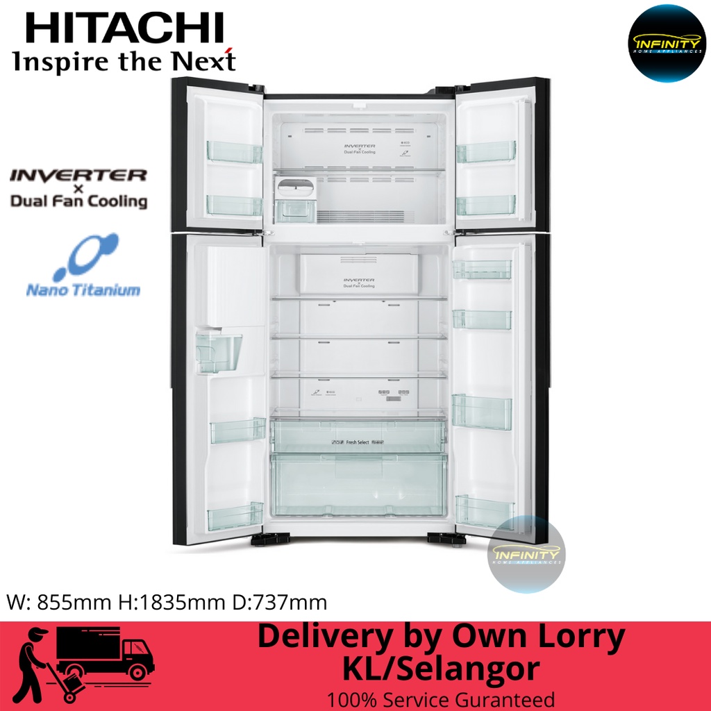 Hitachi 586L 4-Door Big French Gbk Glass Door Refrigerator R-W720P7M GBK | Fridge w Water Dispenser