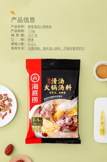 海底捞火锅底料 清油 上汤三鲜 清汤 番茄 麻辣香锅 菌汤 酸菜鱼调味料 Haidilao Steamboat Hotpot Instant Soup Base