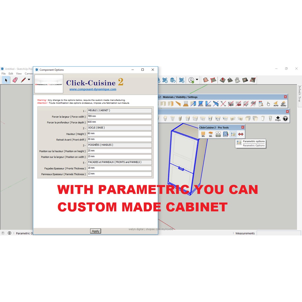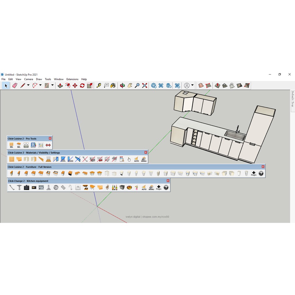 SketchUp | Plugins | Extension 2026 Click-Kitchen 2.2 PRO - One-stop custom cabinet with texture,appliances & decoration
