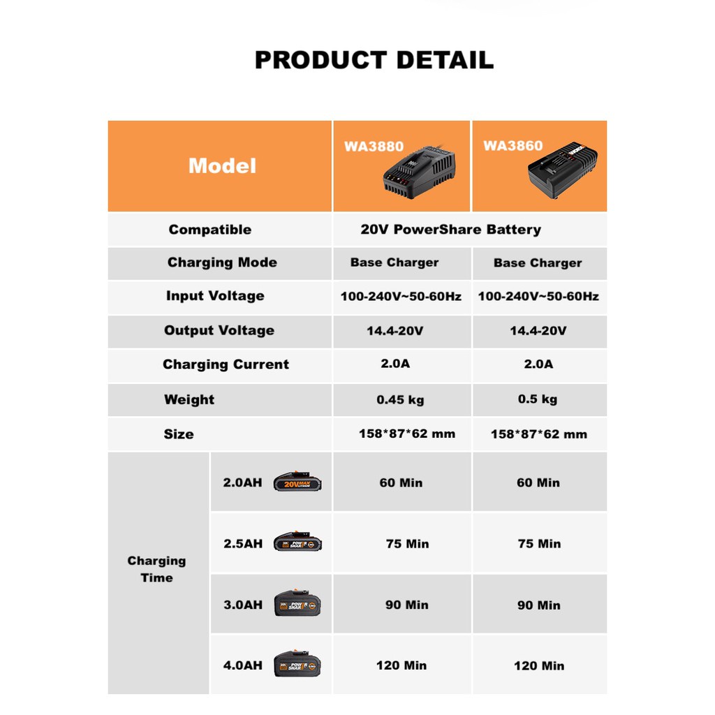 J&E WORX WA3553 20V 4.0Ah Lithium Battery WA3553