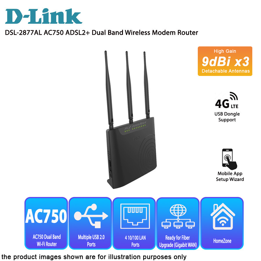 D-Link DSL-2877AL AC750 High Gain 9dBI X3 Detachable Antennas ADSL2+ Dual Band Wireless Modem Router