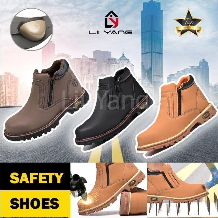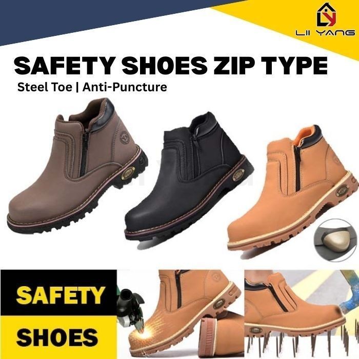 Safety Shoes Zipper Kasut Safety Zip Mid Cut Steel Toe Cap Comfortable Safety Boots Kasut Safeti Zip