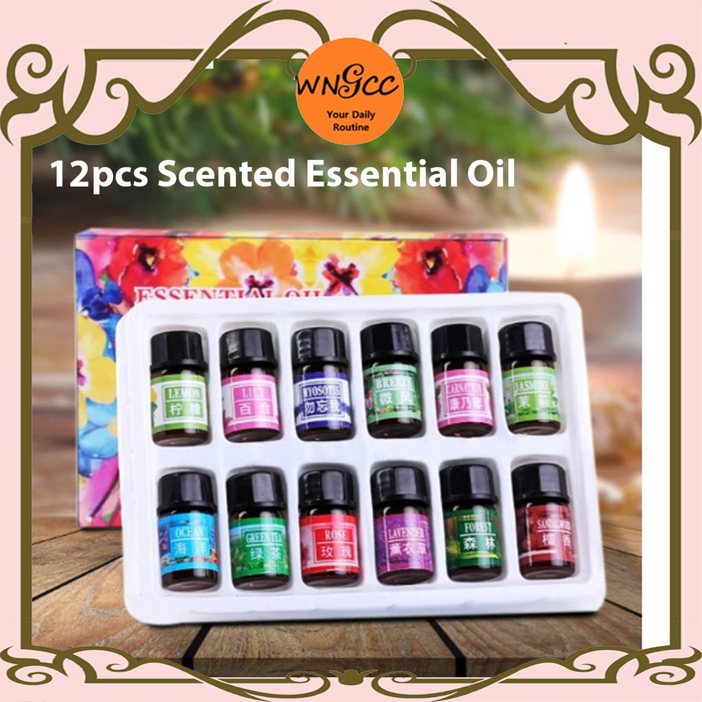 12pcs Scented Essential Oil Set Nature Aromatherapy Collection Aroma for Diffuses Humidifier Air Freshener (08-350)