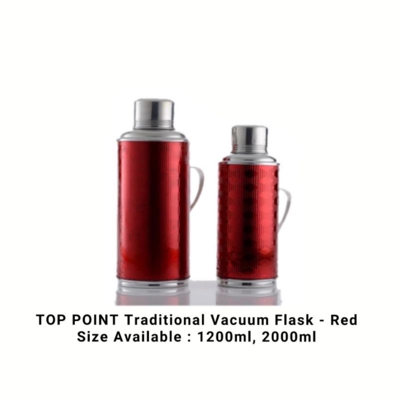 Traditional Glass Vacuum Flask Red / Thermos Merah / Thermal Flask Merah “1.2lit / 2.0lit”