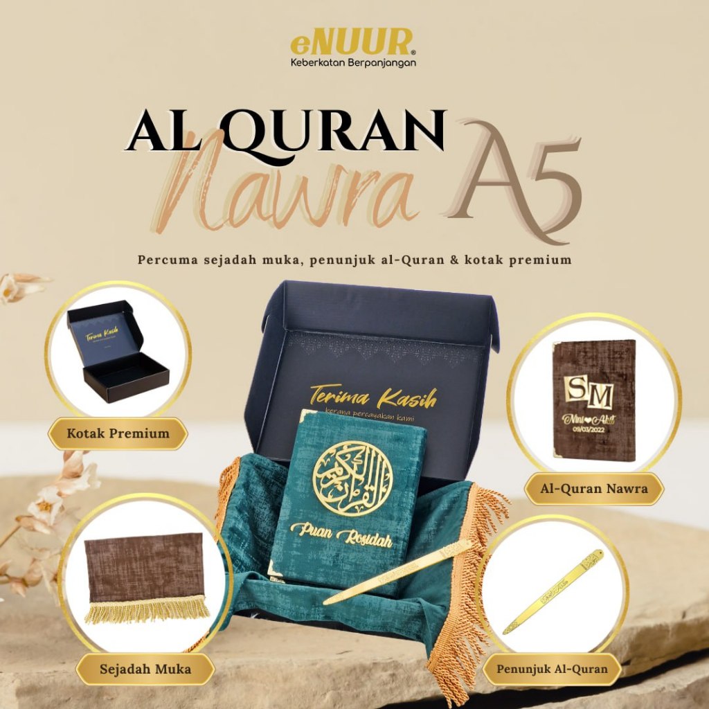 🔥HOT LIVE🔥AL QURAN A5 NAWRA UKIRAN CUSTOM GOLD - HANTARAN/ SET HADIAH/ ANNIVERSARY/ TRAVEL