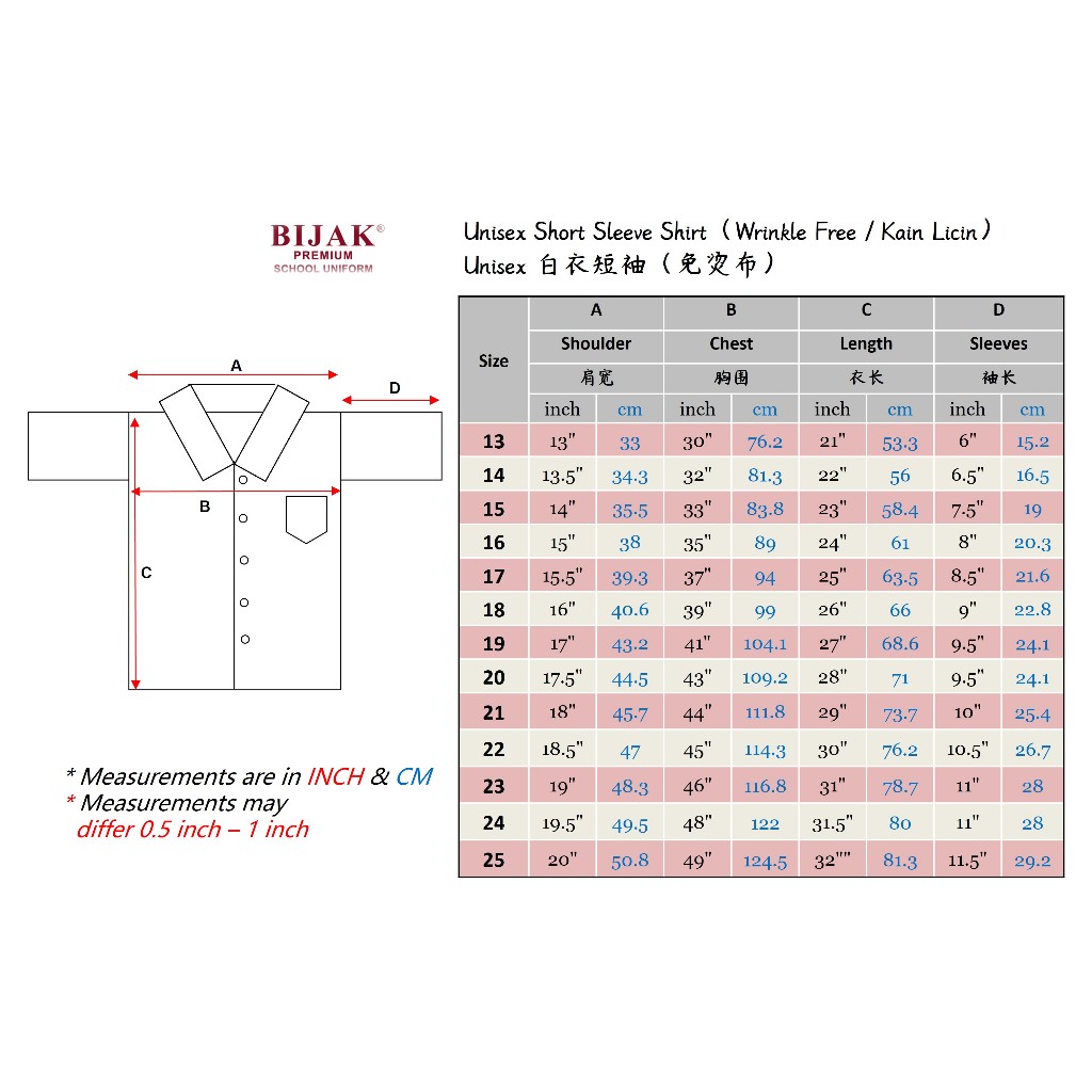 [READY STOCK] BIJAK® PRIMARY / SECONDARY WHITE SHORT SLEEVES SHIRT (WRINKLE FREE / KOSHIBO) 中小学生白衣短袖 (免烫滑布)