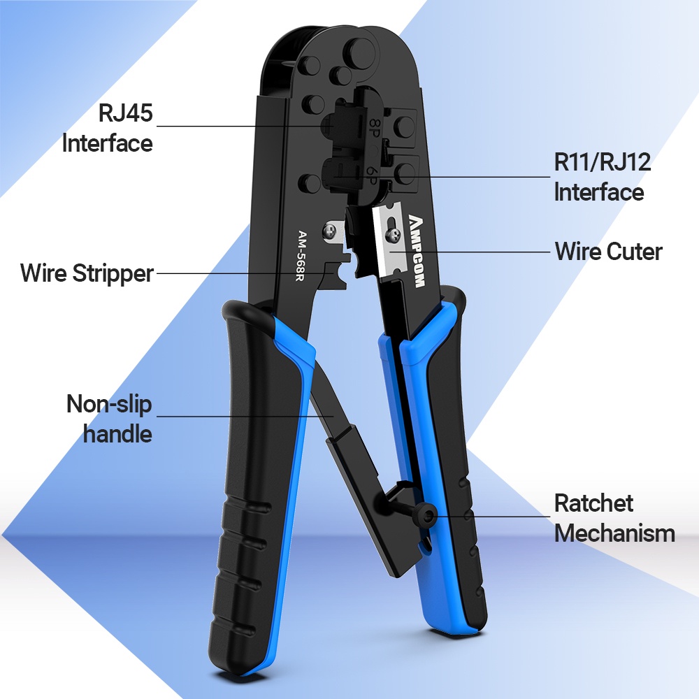AMPCOM RJ11 RJ45 Crimping Tool Ethernet Network LAN Cable for 6P 8P