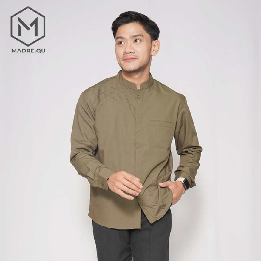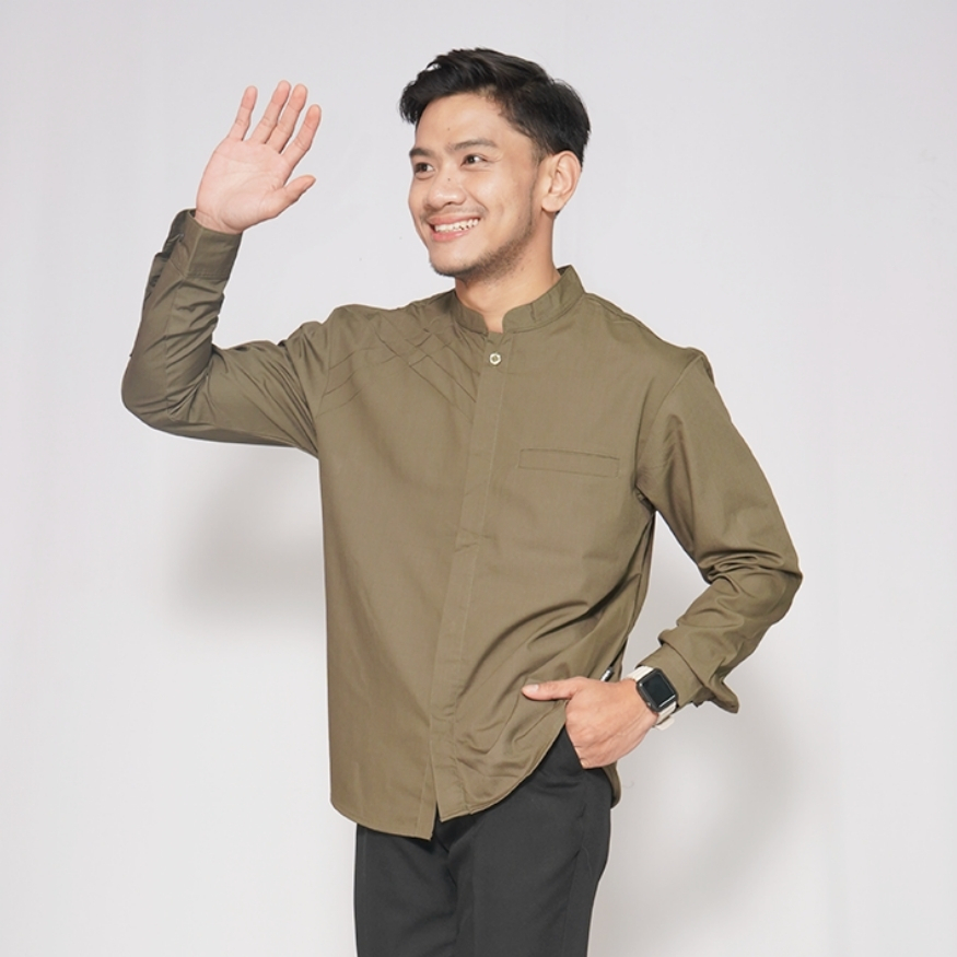 KEMEJA Men's Shirt Long Shanghai Stripekoko Olive
