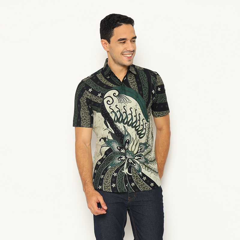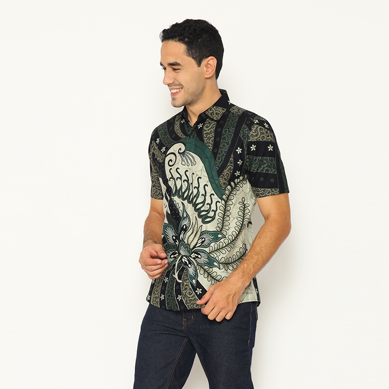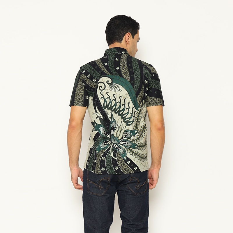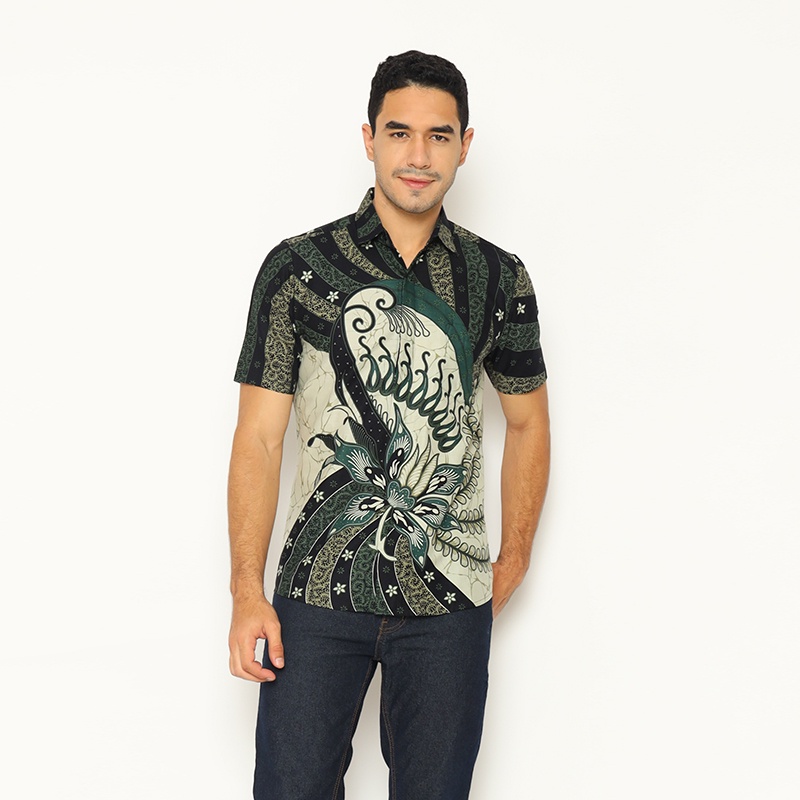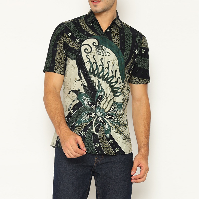 HIJAU KEMEJA My Aksa Men's Short Sleeve Batik Shirt Harish Hyuna Green Baju Batik Lelaki