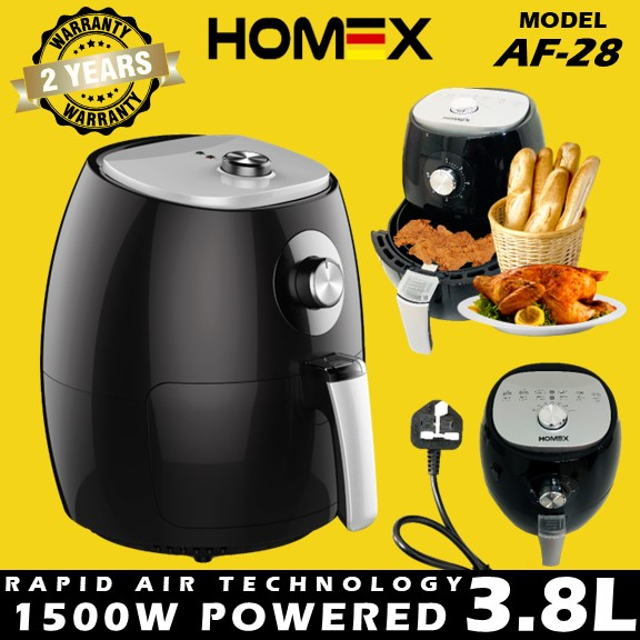[𝟐 𝐘𝐄𝐀𝐑 𝐖𝐀𝐑𝐑𝐀𝐍𝐓𝐘] HOMEX Air Fryer L (3.8L) AF-28 Rapid Air Technology Fry Roast Grill Bake