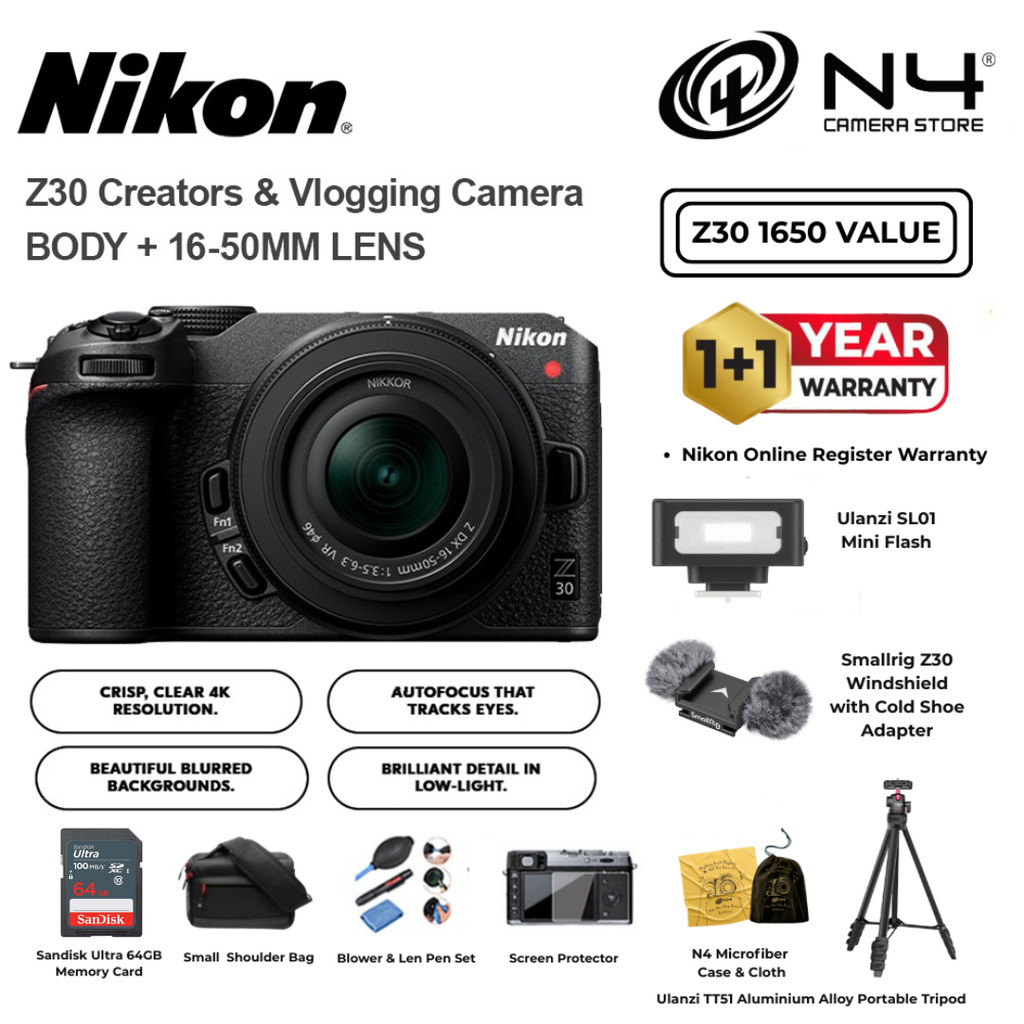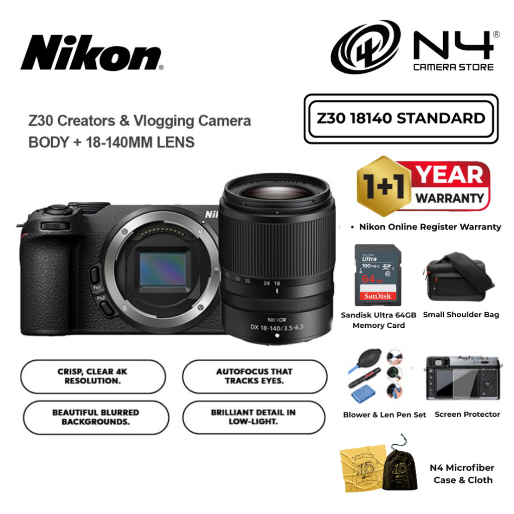 NIKON Z30 Mirrorless Camera NIKKOR Z DX Vlogger Essentials 16-50mm / 18-140mm / 50-250mm Z30 with kit lens