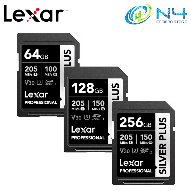 Lexar Silver Plus SD Card 64GB/128GB/256GB Flash Memory Card U3 V30 4K Read Speed Up To 205MB/s USH-I SDXC for SLR Camer