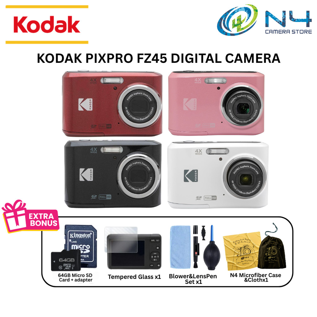 Kodak PIXPRO FZ45 16MP Digital Camera with 4X Optical Zoom 27mm Wide Angle and 2.7" LCD Screen (Black /Red/White)