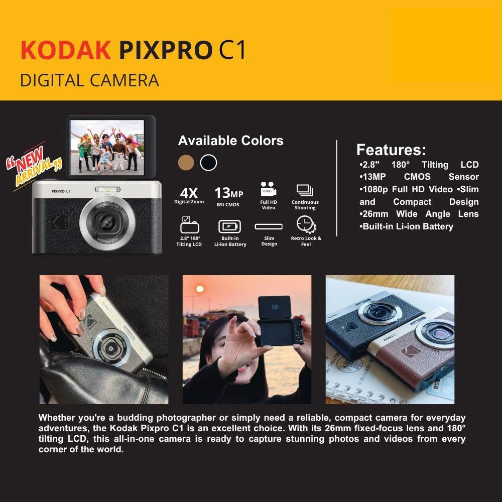 KODAK C1 Digital Camera All-in-one 13MP Sensor, 26mm Fixed Focus Lens, and 180° Tilting LCD