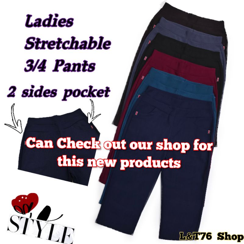 [ Stock sedia ada 1790/1706 ] Seluar 3 suku perempuan bergetah Ladies 3/4 Stretchable Pants 2 sides pocket