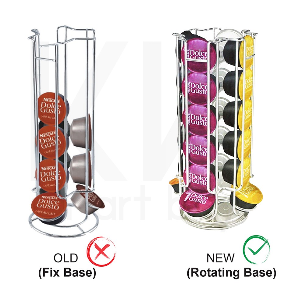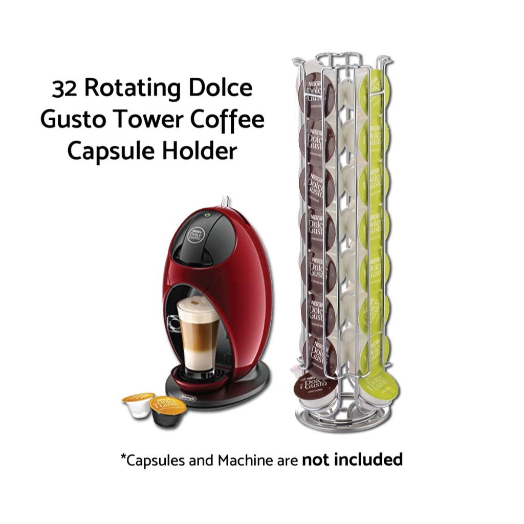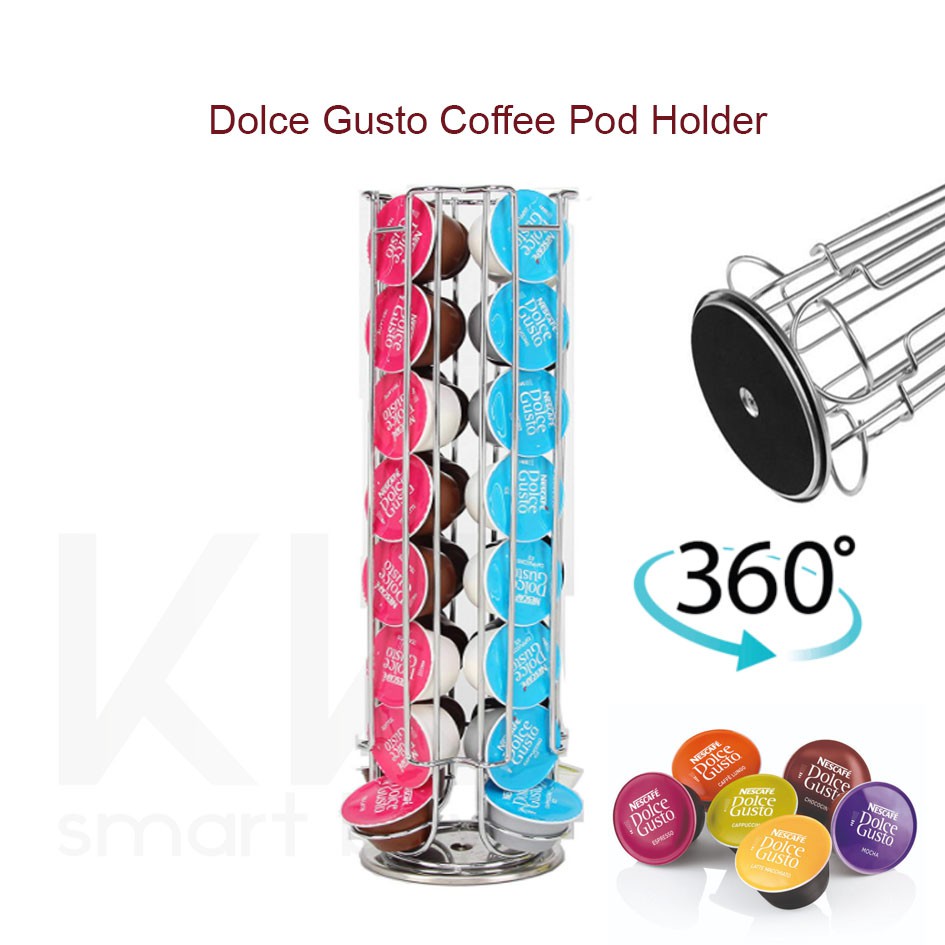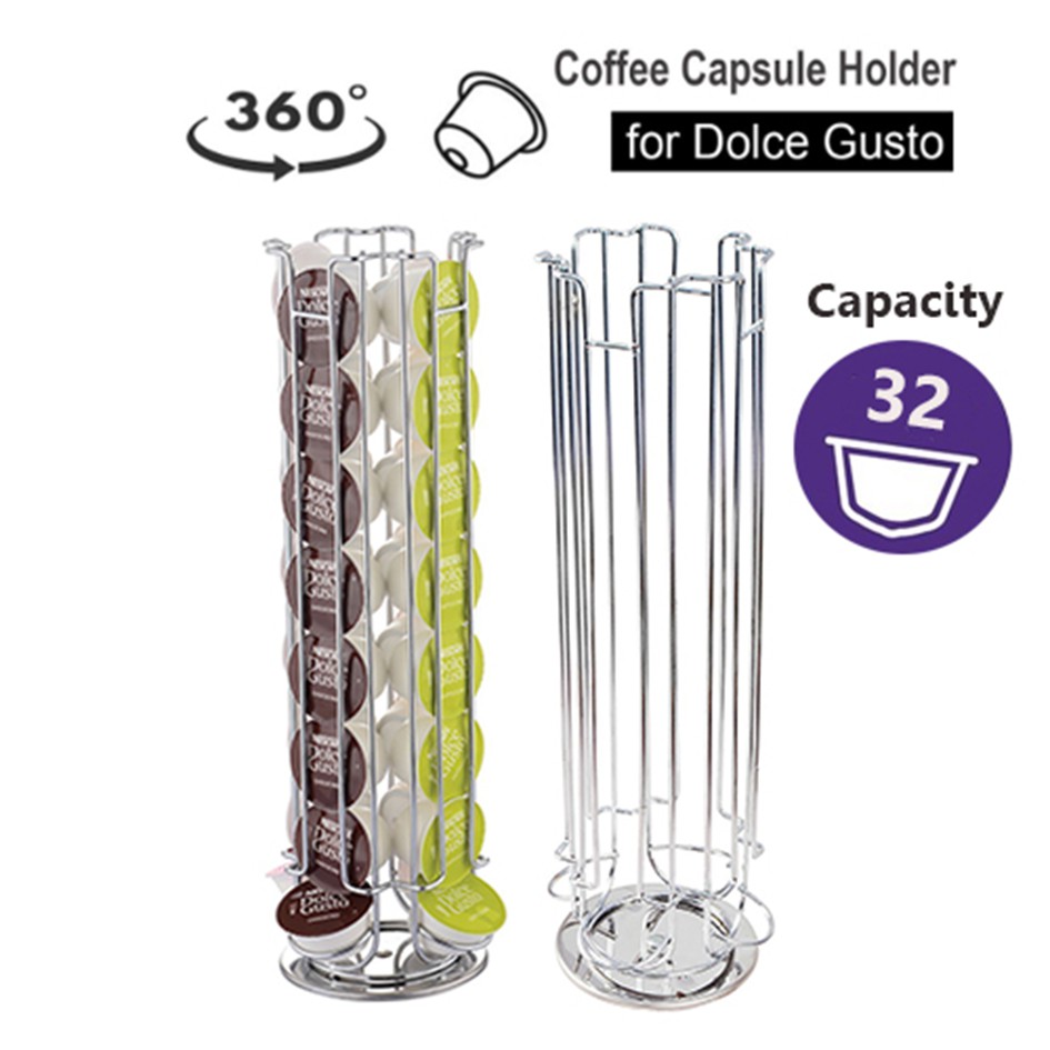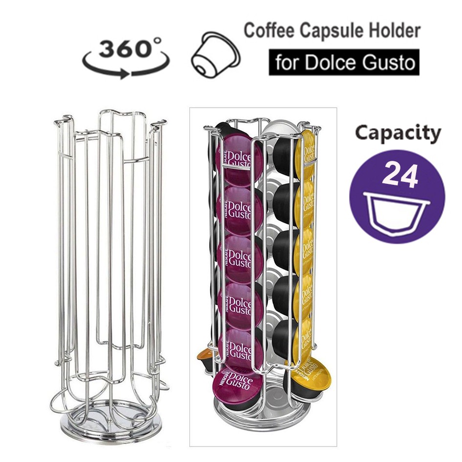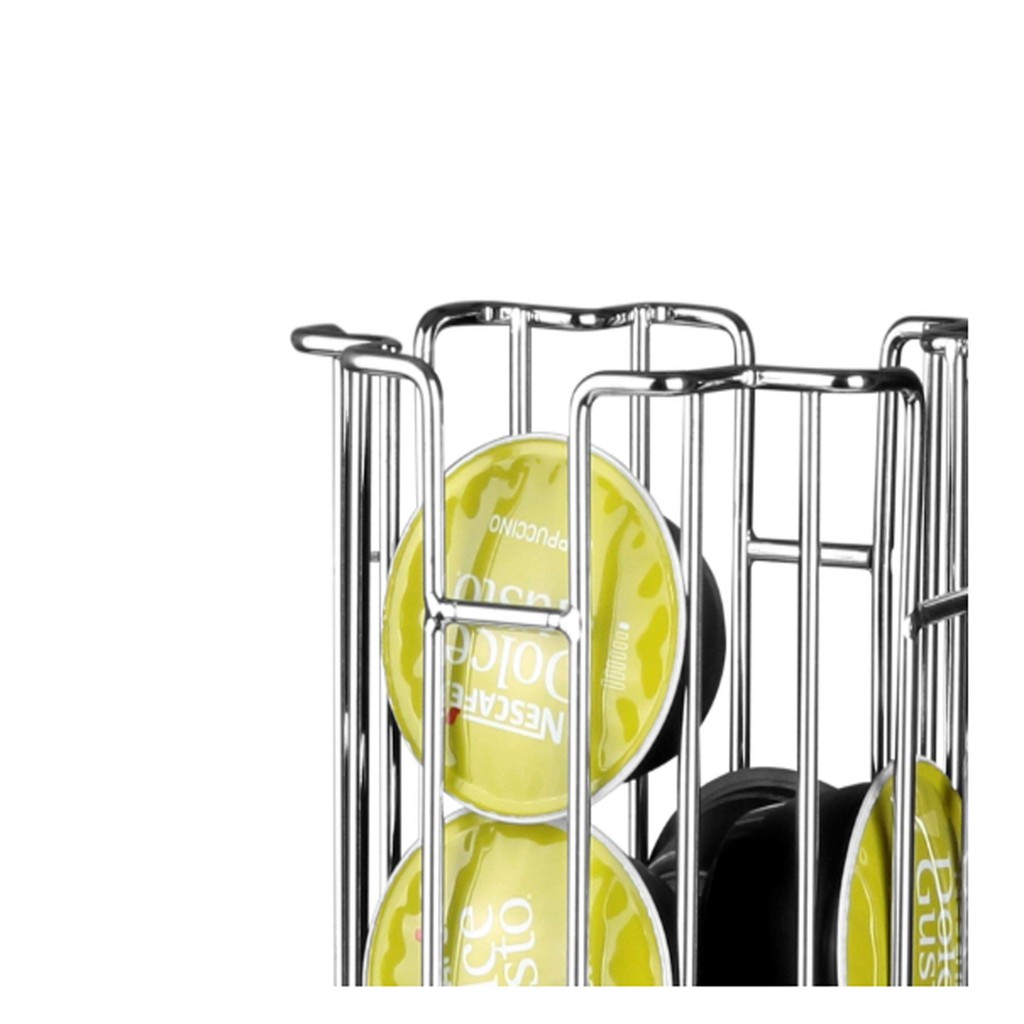 Dolce gusto starbucks coffee pod capsule holder tower rotating swivel silver stainless chrome metal dispenser