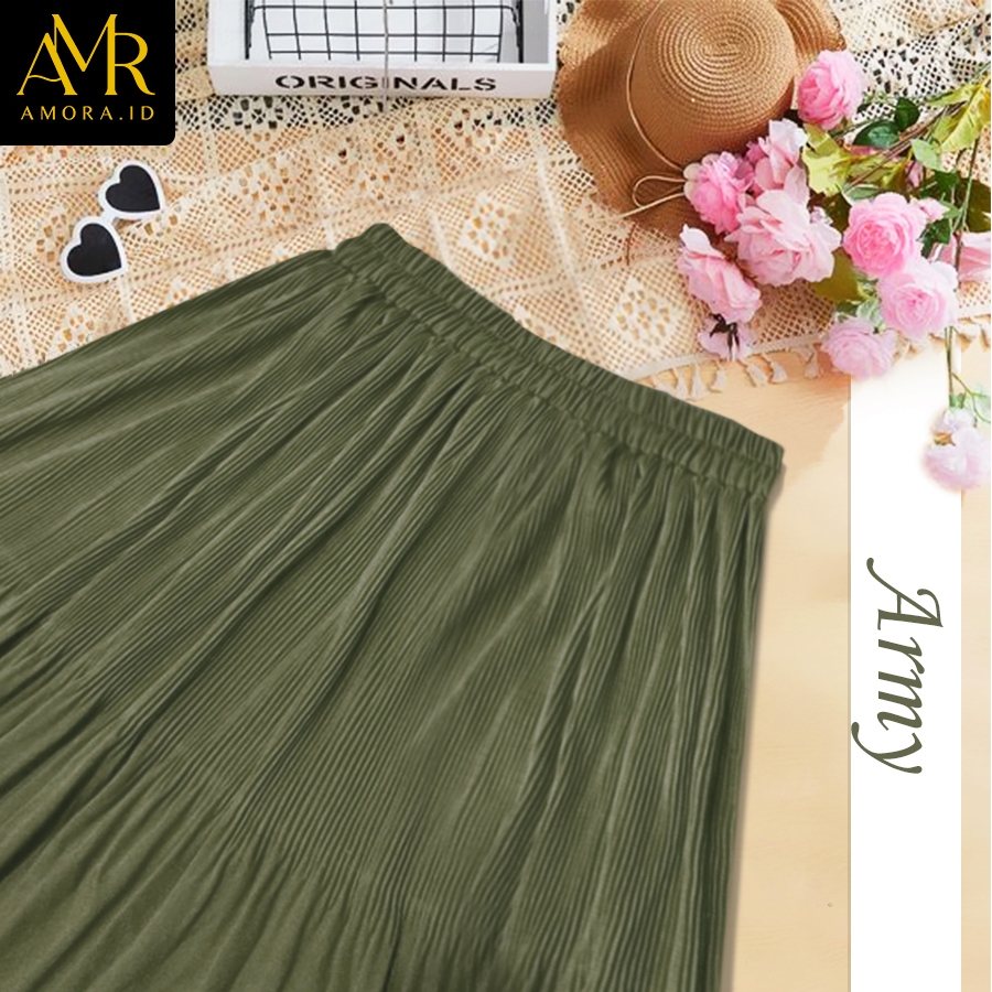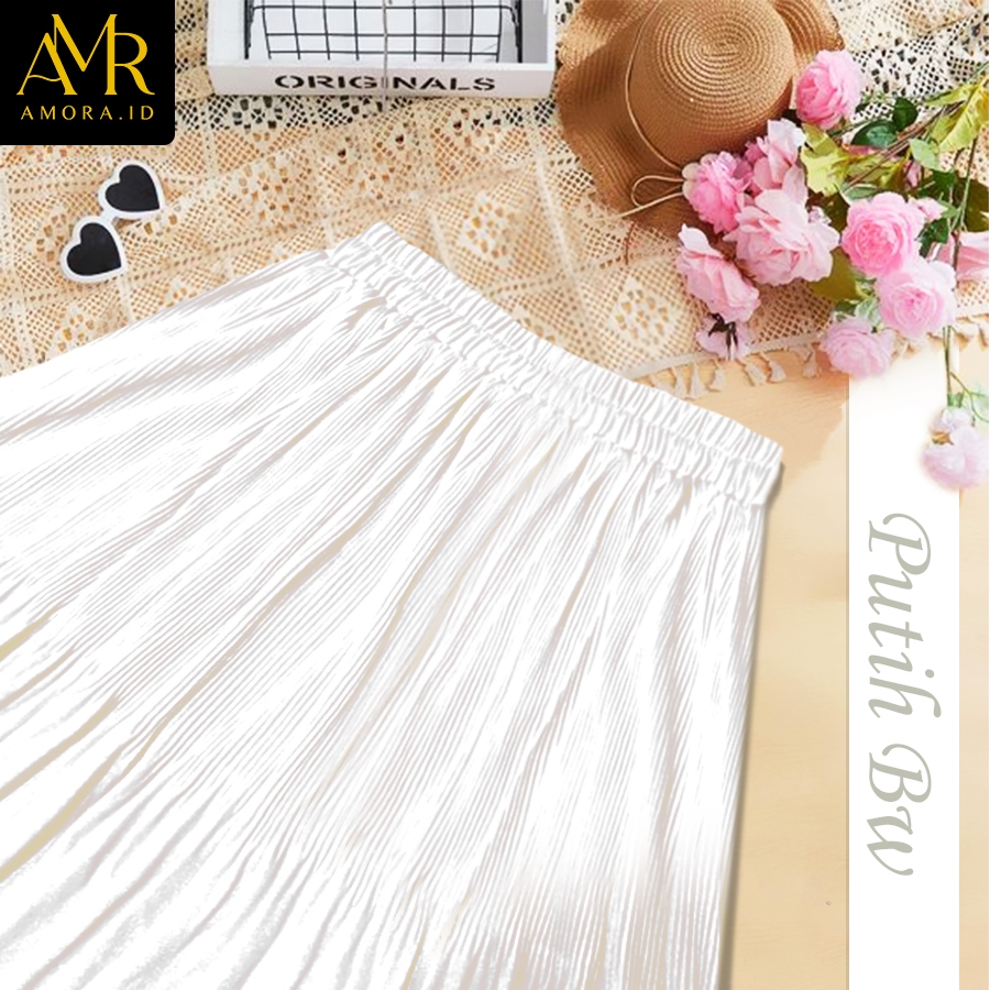 Muslim Long Pleated Ruffle Skirt with Premium Plain Lidi Layered Model Muslimah Skirt