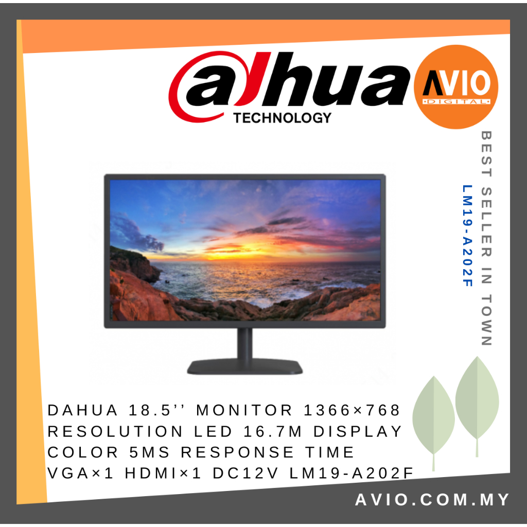 Dahua 19 18.5’’ Inch LED Monitor 1366×768 Resolution 5ms Response 16.7M Color VGA HDMI LM19-A202F