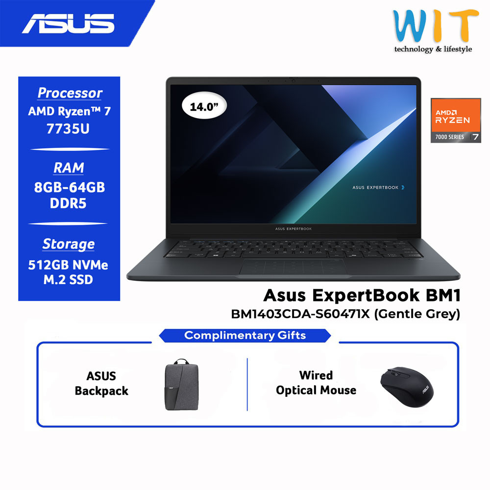 Asus ExpertBook BM1403CDA-S60471X (AMD Ryzen 7-7735U/8GB-64GB RAM/512GB SSD/14''FHD/W11 PRO/3 Years Warranty)