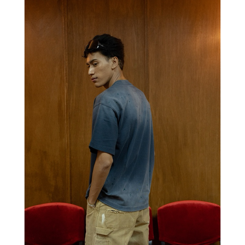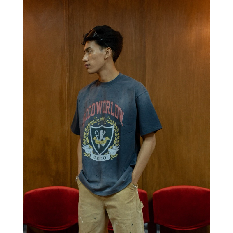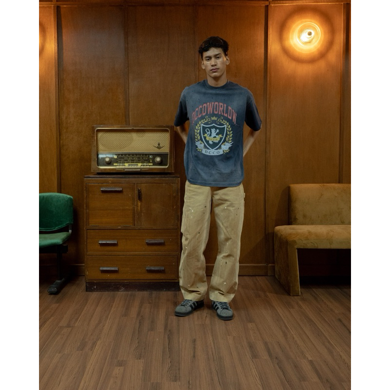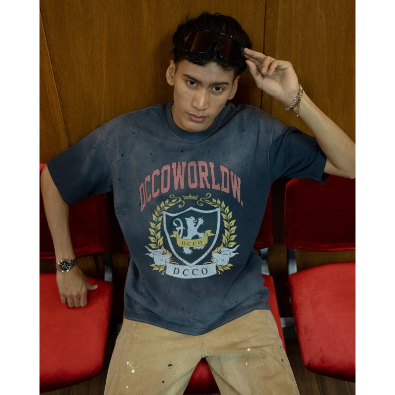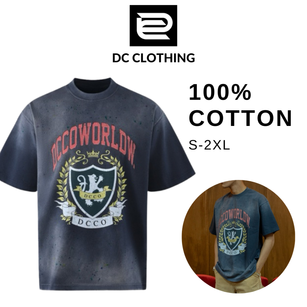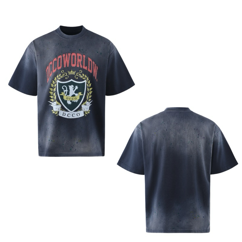 DC CLOTHING Dcco Worldwide City Tee – 270G Stretch Cotton, Splash Ink Design, Dyed Finish – Blue, S-2XL
