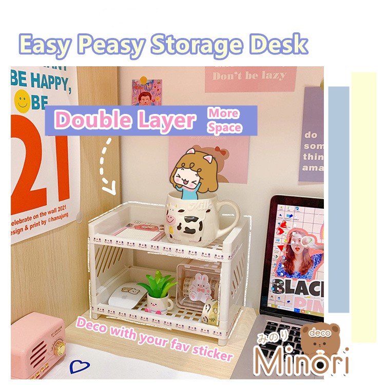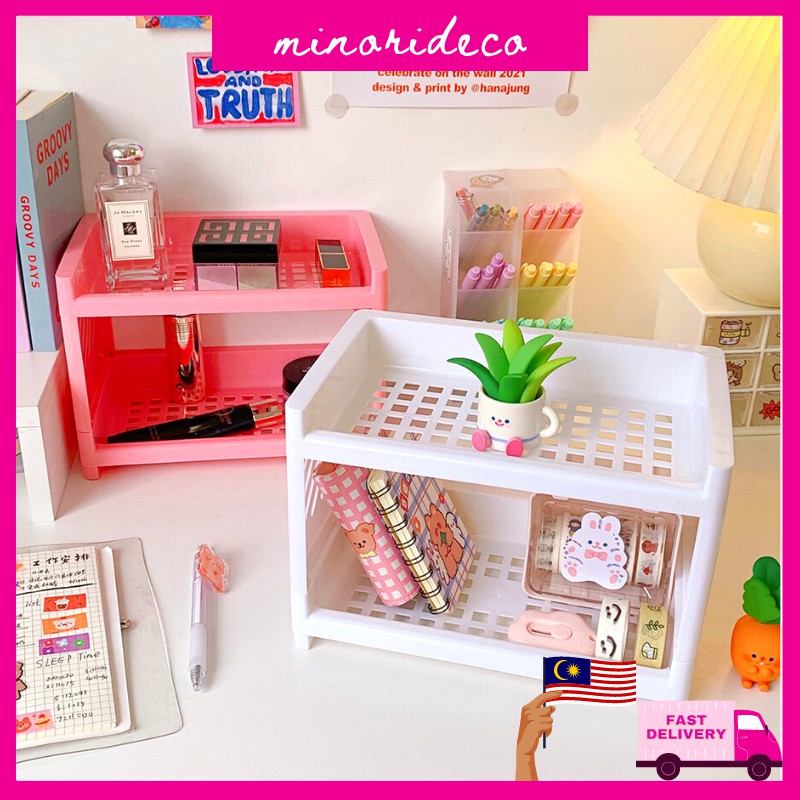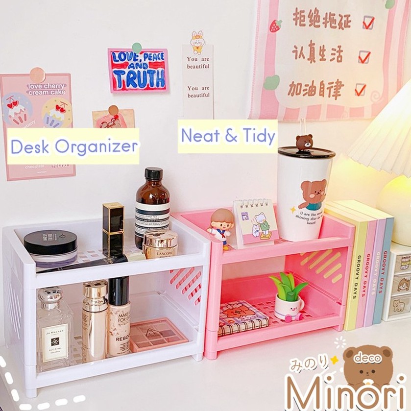 MINORI Desk Organizer Double Layer Rack Shelf Office Table Storage Student Stationery Organizer Rak Buku Rak Meja /书桌收纳架