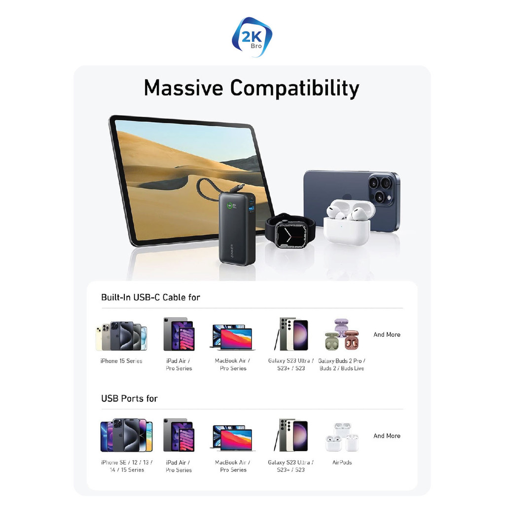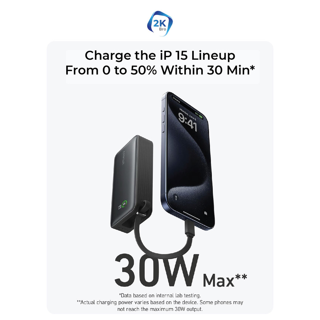 Anker A1259 Nano Fast Charge Power Bank, 10K Portable Charger with Built-in USB-C Cable, PD 30W Max Output with C Cable