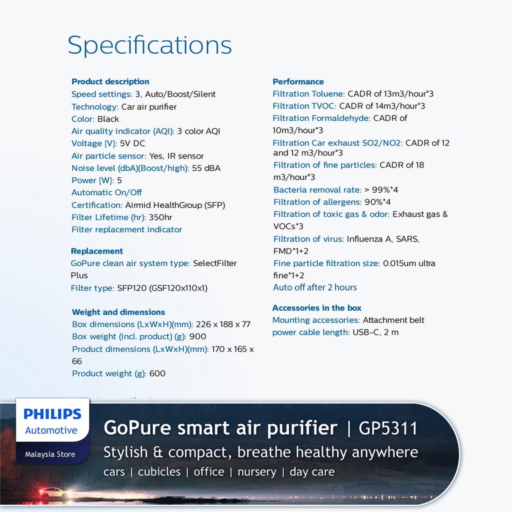 Philips GoPure 5311 Car Air Purifier - GP5311