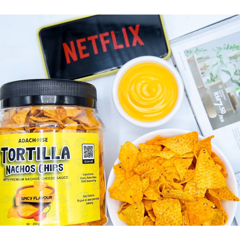 [FREE CHEESE & KOREAN SAUCE] Adachoise Tortilla Nachos Chips with Cheese Sauce and Koreans Spicy Sauce 250g