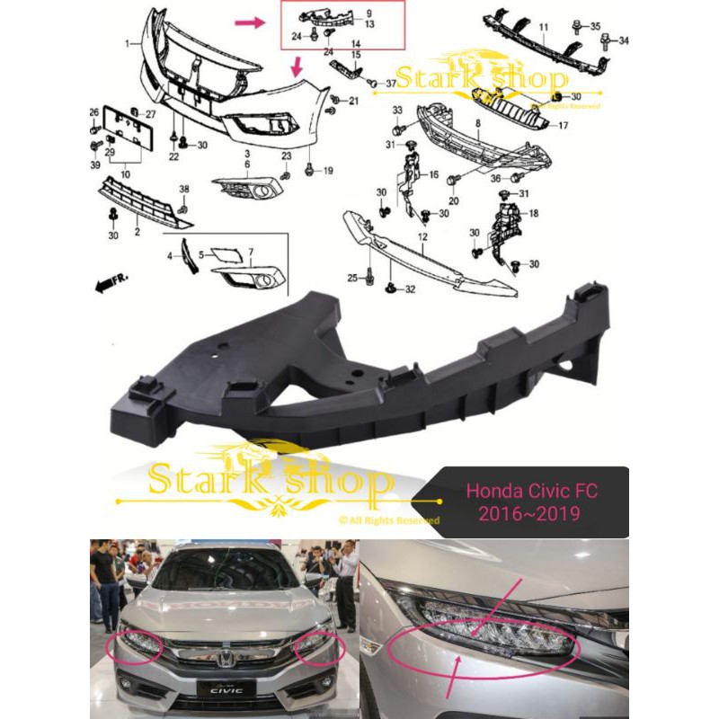 ORIGINAL HONDA CIVIC FC TEA 2016~2019 FRONT HEAD LAMP LOWER BRACKET RH/LH. BUMPER CENTRE BRACKET