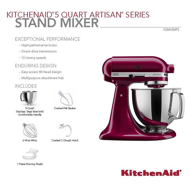 KitchenAid 4.8L Artisan Tilt-Head Stand Mixer KSM150 Kitchen Aid Stand Mixer Drive Motor Stainless Steel Bowl 5KSM150PSB