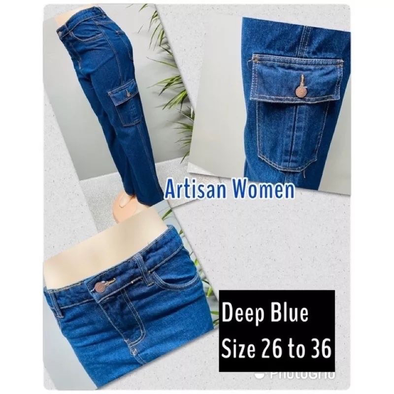 ( Ready Stock )Long Palazzo Cargo 6 Pocket Solid Denim Jeans New Design untuk Perempuan women’s palazzo