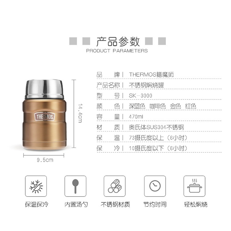 [In Stock] Thermos 不锈钢保温汤杯 Stainless Steel King Insulated Food Jar With Spoon 470ml Midnight Blue(Import from Australia)