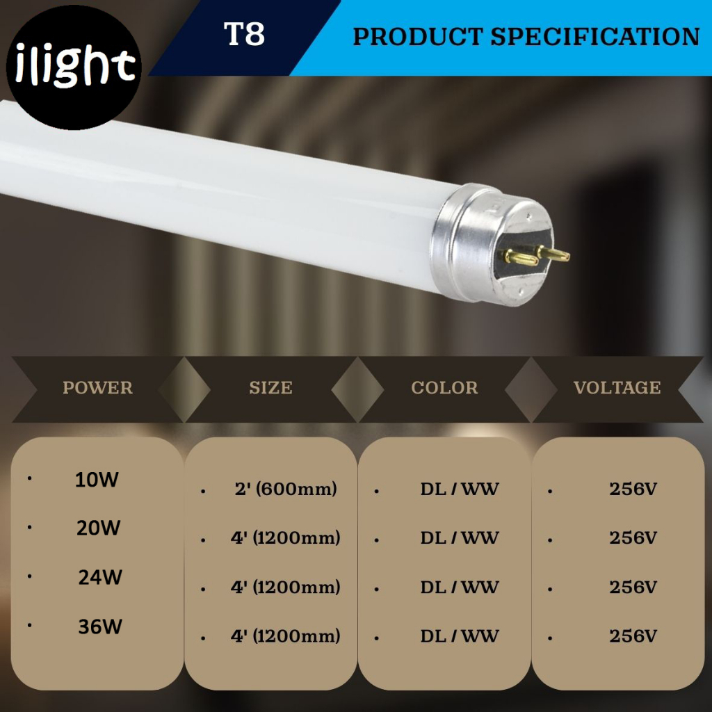LED Fluorescent T8 Lampu Kalimantang 10W (2FT) 20W, 24W, 33W , 30W (4FT) WARM WHITE DAYLIGHT