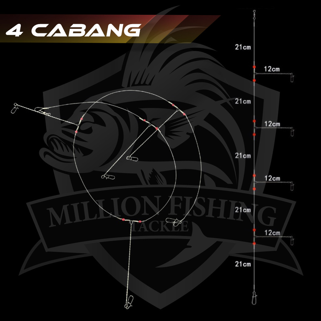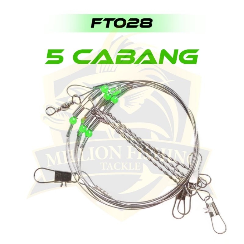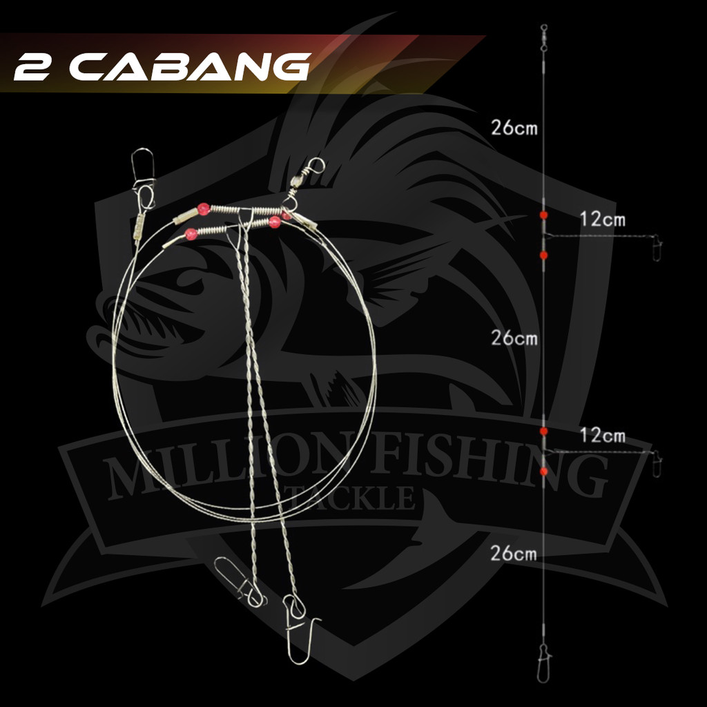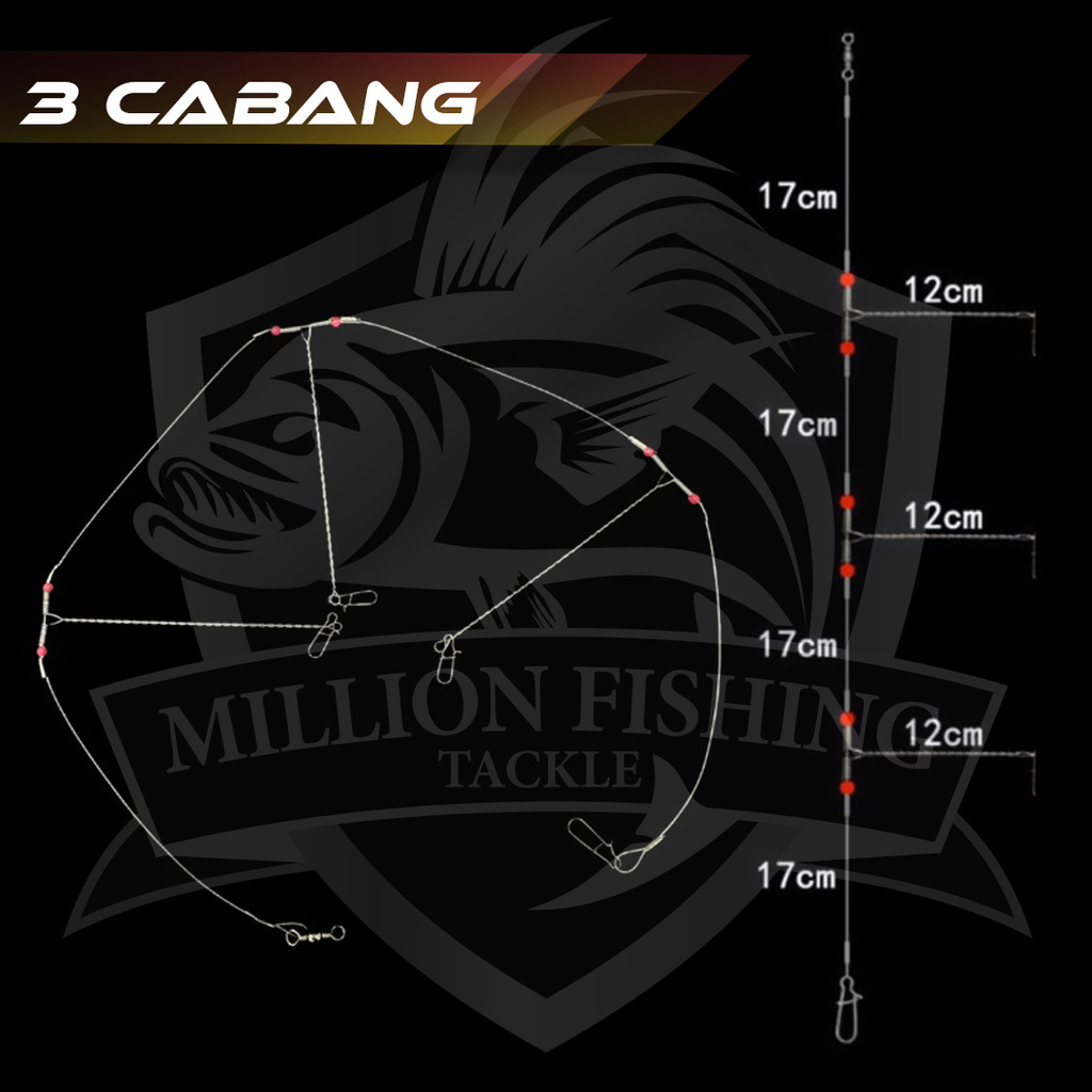 【FT028】Perambut Cabang Besi 2/3/4/5 cabang Anti-Winding Swivel String Sea Fishing Steel Rigs Wire Leader Luminous Bead