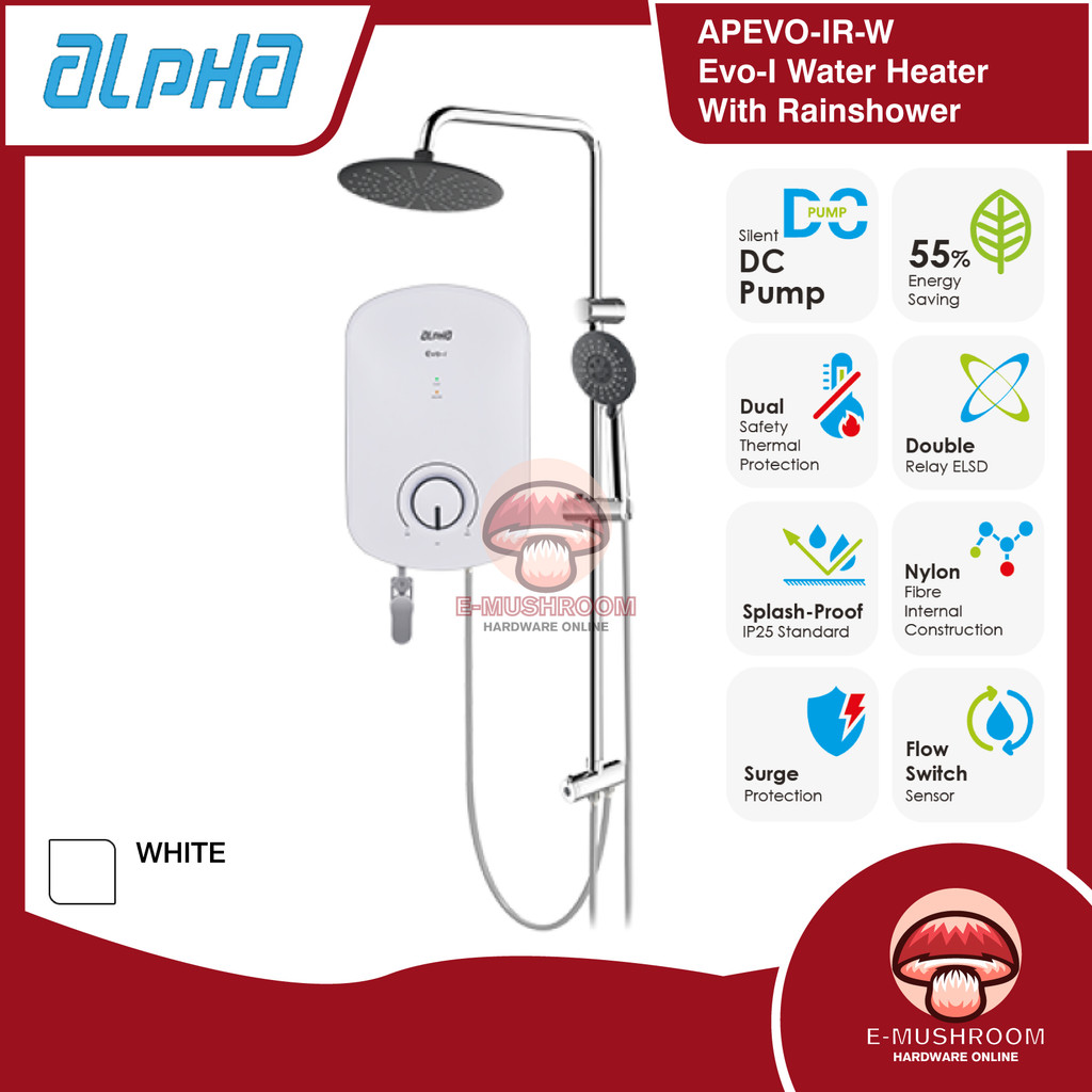Alpha Evo-I Instant Water Heater With DC Pump & Rainshower