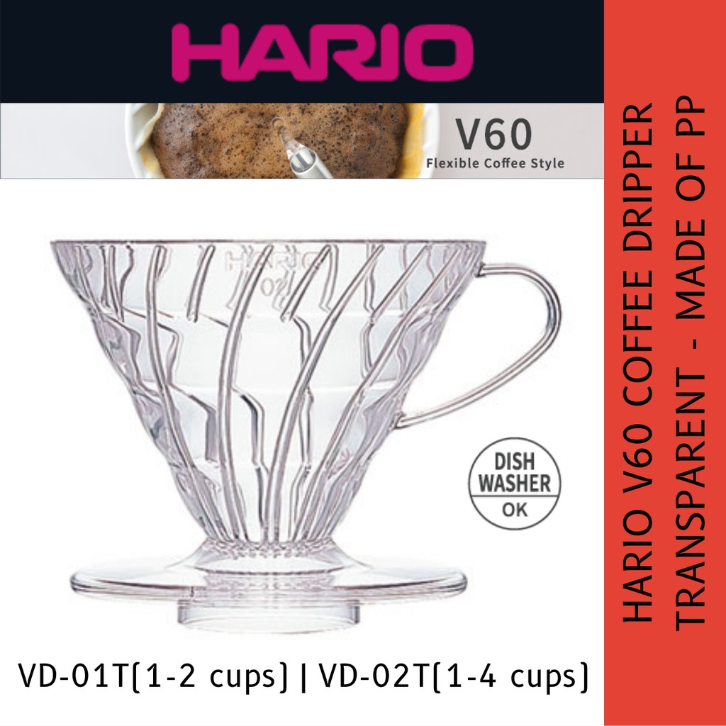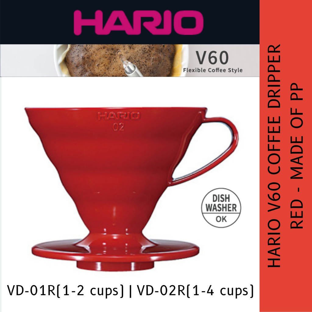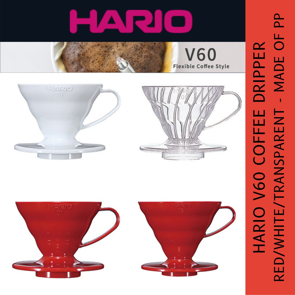 Hario V60 Dripper Plastic 01/02 Transparent/White/Red